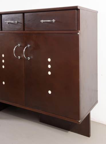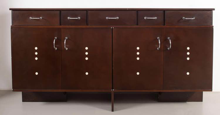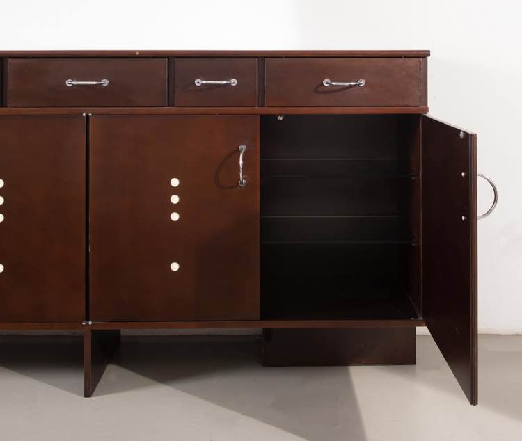 Giandomenico Belotti. Credenza in legno con ripiani interni in vetro. Maniglie in metallo cromato modello ‘Hoffmann 197/N’. Prod. Alias, 1985 circa. Cm. 102x202x45.