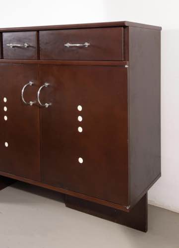 Giandomenico Belotti. Credenza in legno con ripiani interni in vetro.