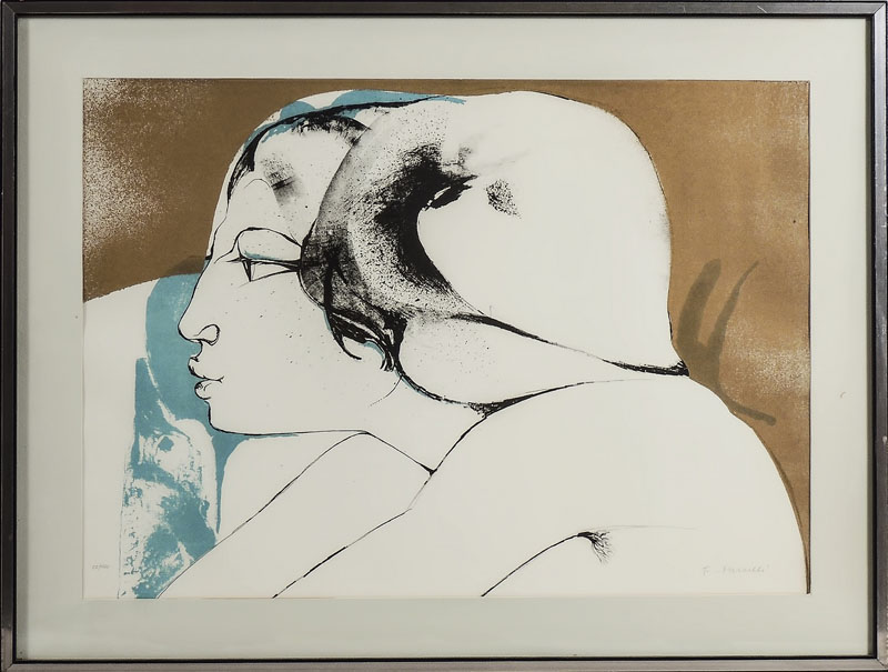 FERNANDO FARULLI (1923-1997) Ritratto femminile - Female Portrait litografia - lithograph, es 22/150, firmato, in cornice cm 50x67 Corredata di certifcato di autenticità Gori & Zucchi - With certificate of authenticity