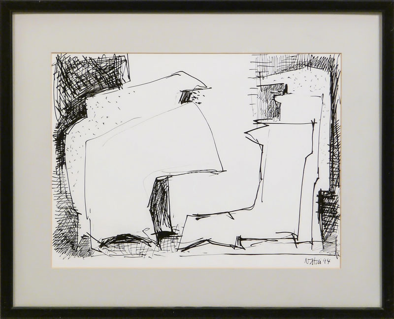 GUALTIERO NATIVI (1921-1999) Studio 1994 - Study china su carta - indian ink on paper, firmato e datato 94, in cornice cm 23x30,5 Corredato di certificato su fotografia Archivio Gualtiero Nativi, n D9414 - With certificate of authenticity