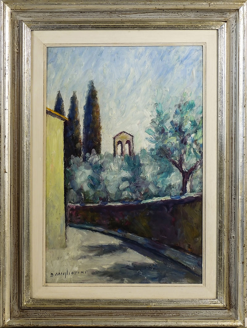 DINO MIGLIORINI (1907-2005) Scorcio di strada - Country Street View olio su faesite - oil on faesite, firmato, in cornice cm 60x40