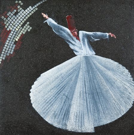 Aldo Mondino (Torino 1938 - 2005) SENZA TITOLO, 2001 Olio su linoleum, cm. 40x40 Sul verso: firma e data. Autentica dell'Archivio Aldo Mondino con timbro a secco e firma "Antonio Mondino" ed Inventario n° 20080619002004.