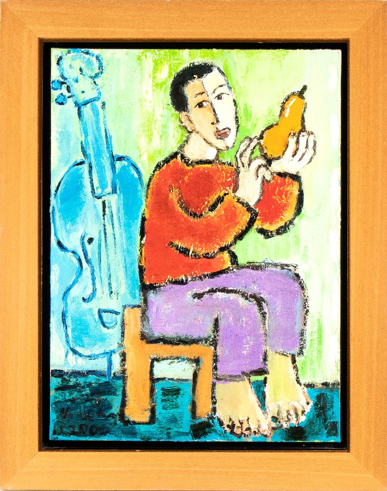 KRZYSZTOF KOKORYN (Szczytno 1964), Ritratto di ragazzo con pera e violino, 2000