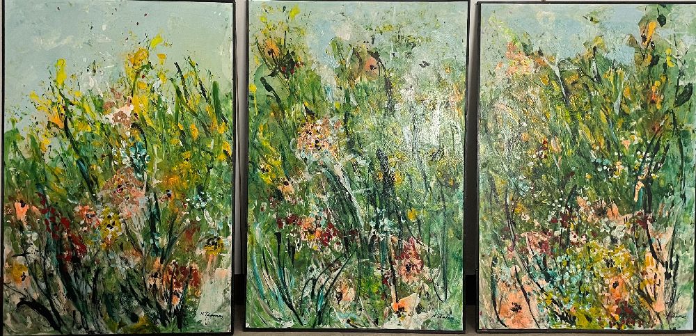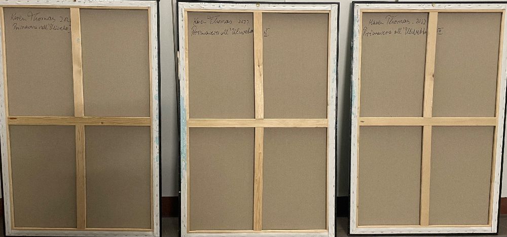 KAREN THOMAS (Berlino 1942), Primavera nell'uliveto. Trittico, 2021