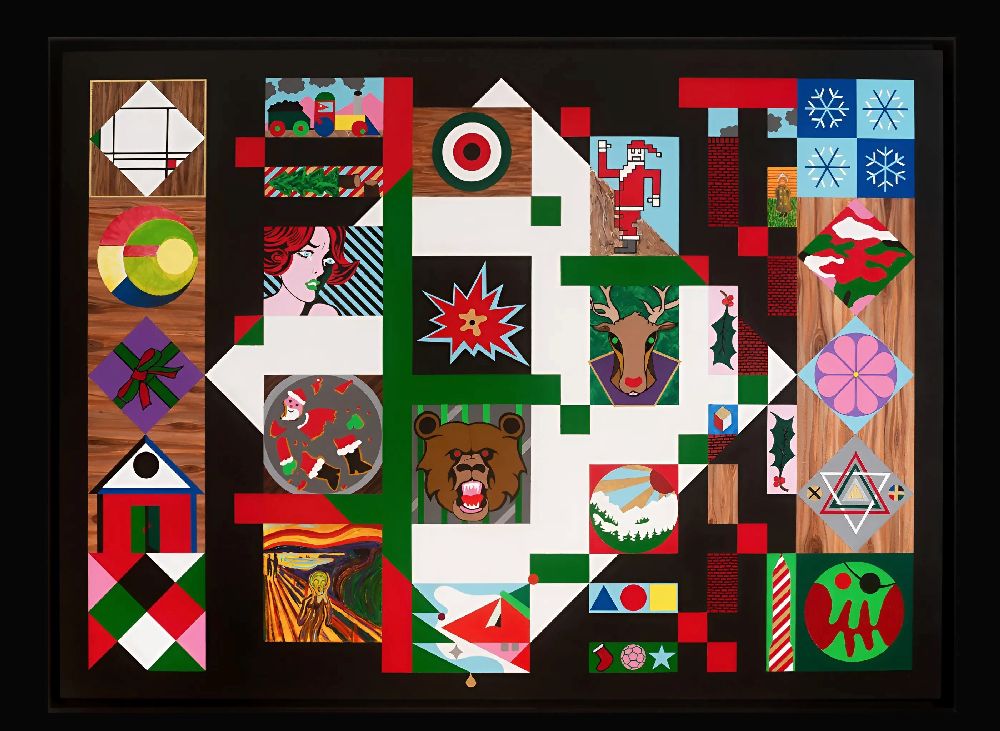In generale, in questa serie di dipinti esploro attraverso molteplici riferimenti visivi e culturali che vanno dalla pop art e dalla cultura di massa alla pittura costruttivista e al cubismo, all'arte antica e classica, all'astrazione geometrica sudamericana e ai tessuti precolombiani, tra gli altri. In questo senso, ogni dipinto è una raccolta di esperienze visive (sia personali che collettive) attraverso le quali cerco di rivedere come immagini che provengono da origini e stili diversi possano essere intrecciate per arrivare a una “visione” messa insieme da visioni multiple."