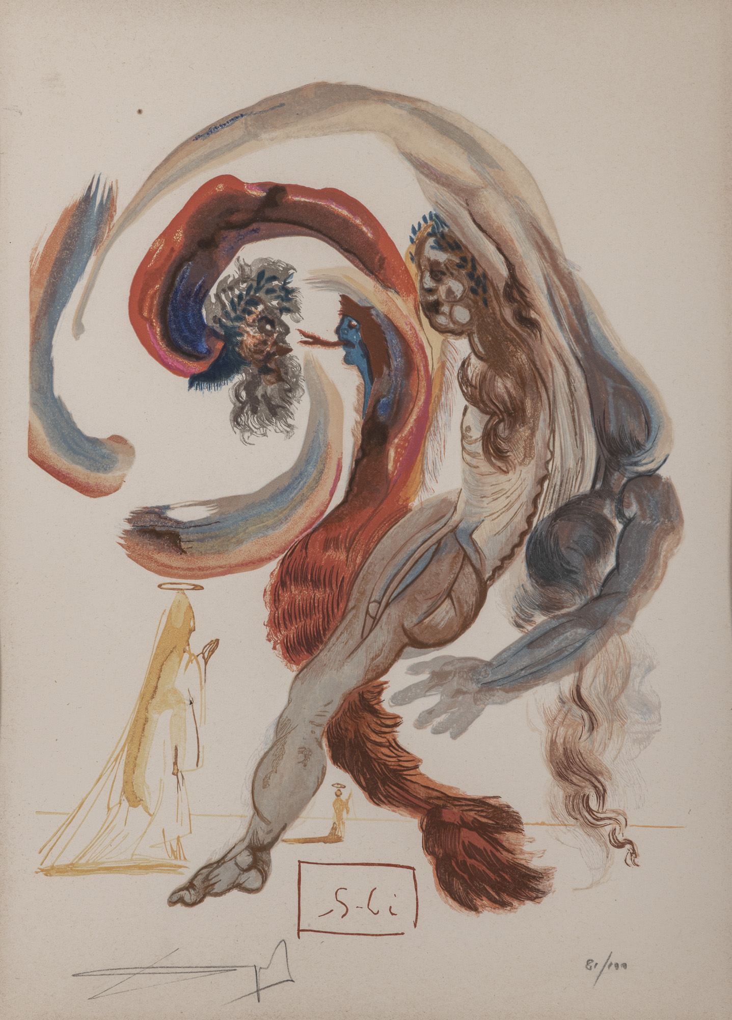 La grafica fa parte della serie realizzata da Salvador Dalì sulla Divina Commedia