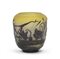 in vetro a cammeo inciso all'acido nei toni del marrone e fondo giallo. Decoro lacustre con motivo floreale e fogliato.
