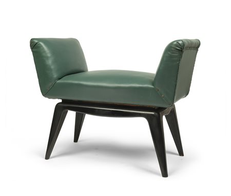 in pelle verde imbottita e bottoni in ottone. Struttura in legno verniciato.