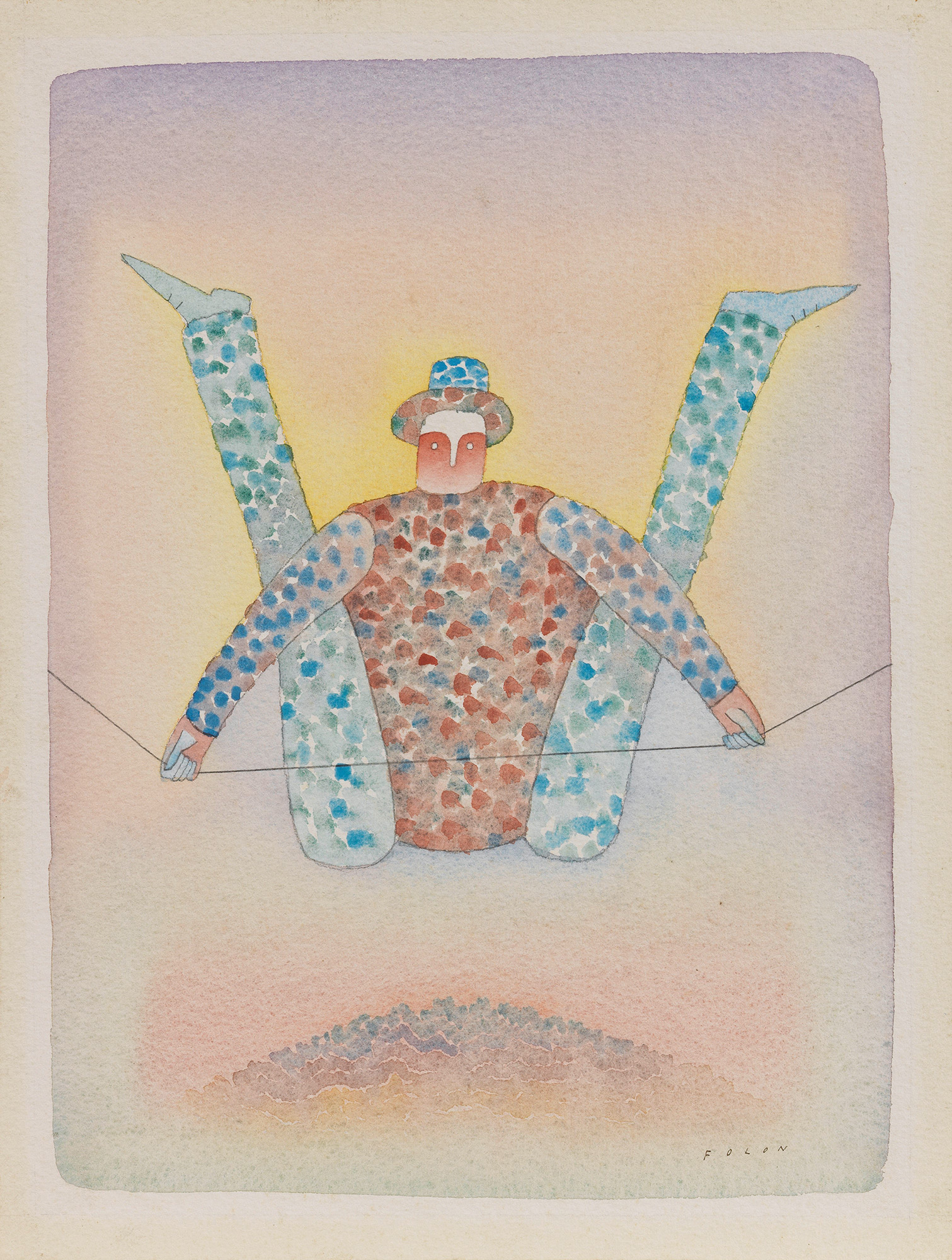 Jean Michel Folon (Bruxelles, 1934 - 2005) Le fun, 1980 Acquerello su...