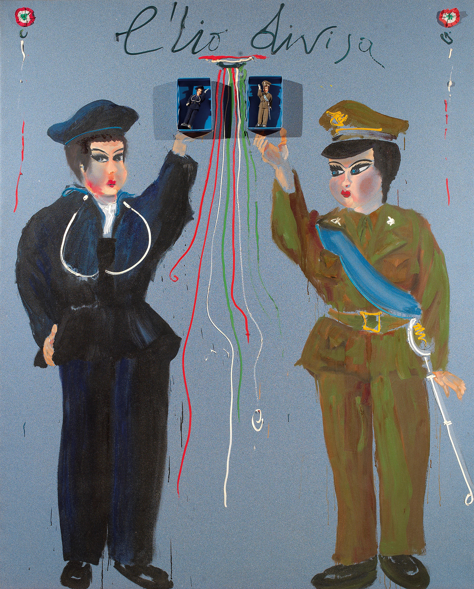 Aldo Mondino (Torino, 1939 - 2005) L'io divisa, 1990 Acrilico e collage su...