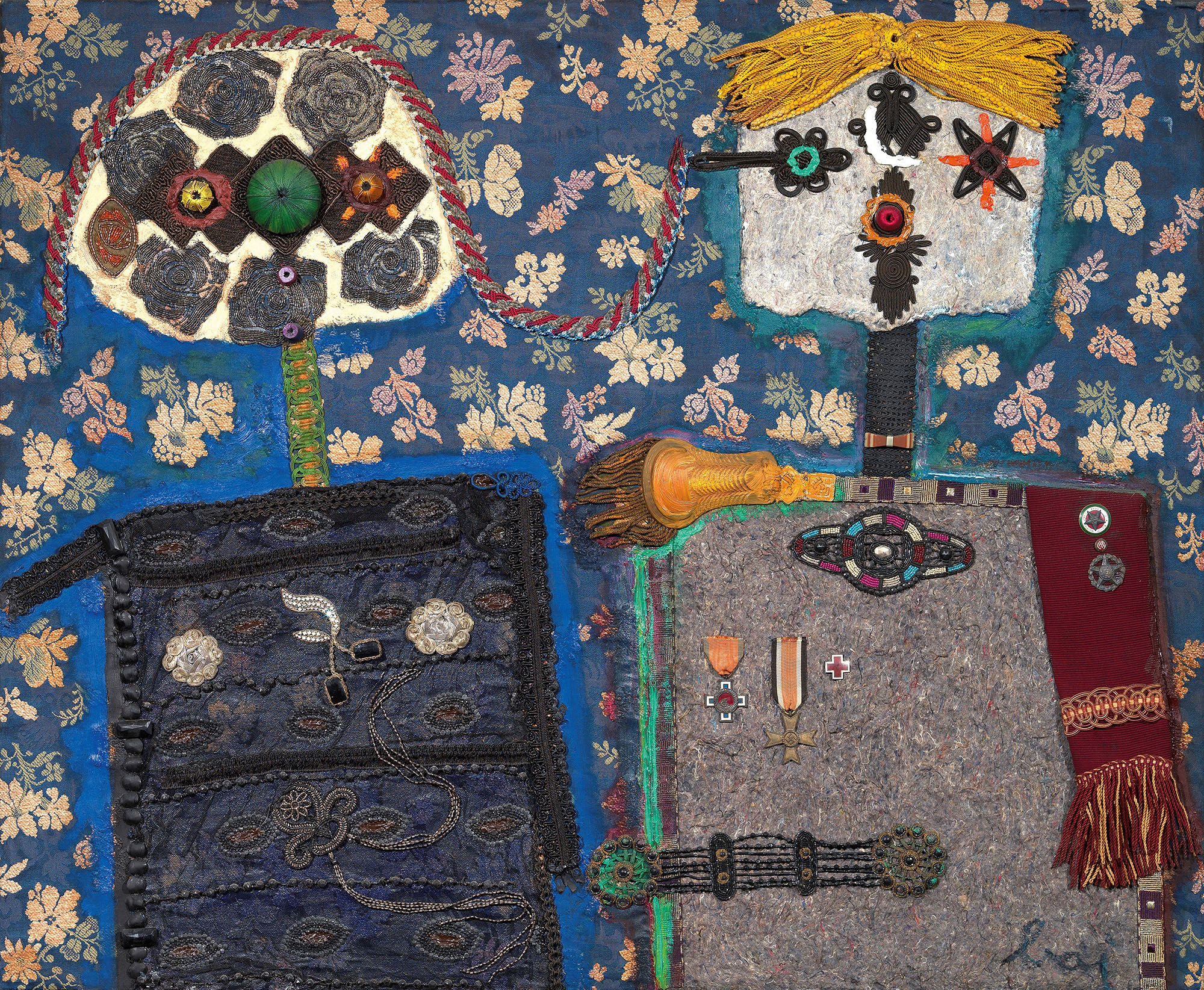 Enrico Baj (Milano, 1924 - Vergiate (Va), 2003) Due personaggi, 1963 Olio e...