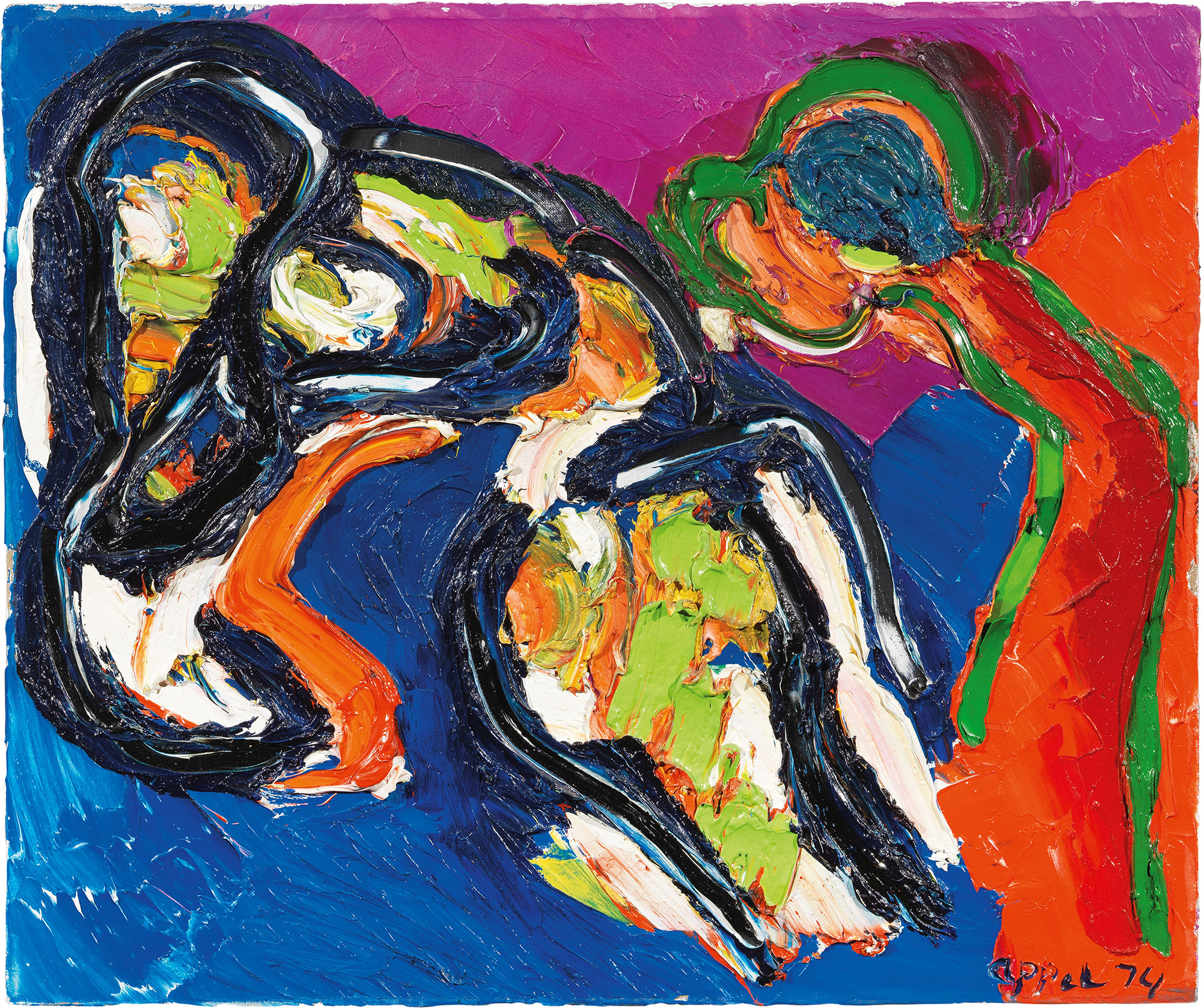 Karel Appel (Amsterdam, 1921 - Zurigo, 2006) Two Fantastique Animals, 1974...