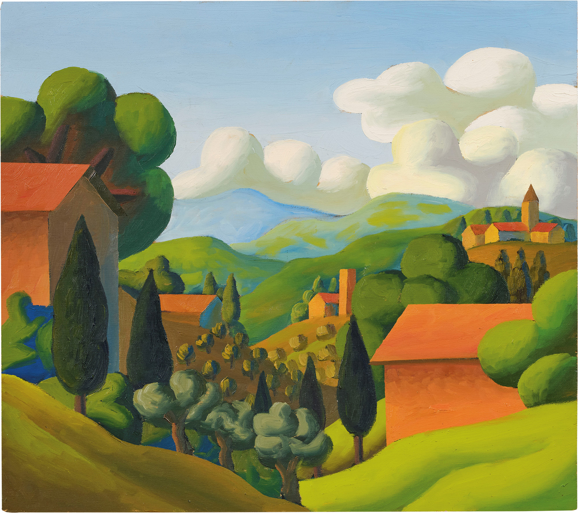 Salvo (Leonforte (En), 1947 - Torino, 2015) Toscana, 1997 Olio su tavola, cm...