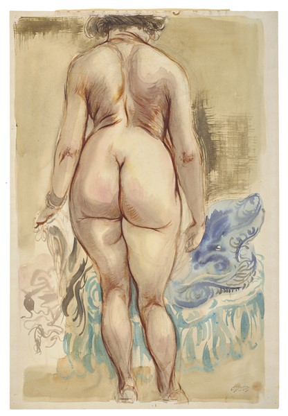 GEORGE GROSZ "Female Nude" 1939 acquarello su carta cm 58,8x40 Firmato in basso