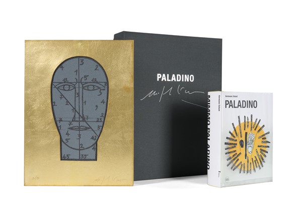 MIMMO PALADINO "Sarabanda" 2017 serigrafia su cartone grigio con applicazione di