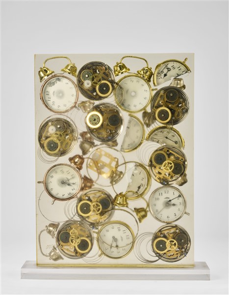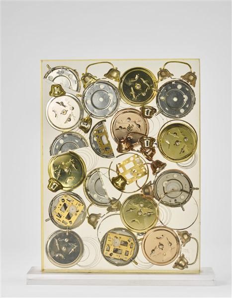 Arman "Réveils" accumulazione di sveglie dentro plexiglass cm 40x30 firmata e n