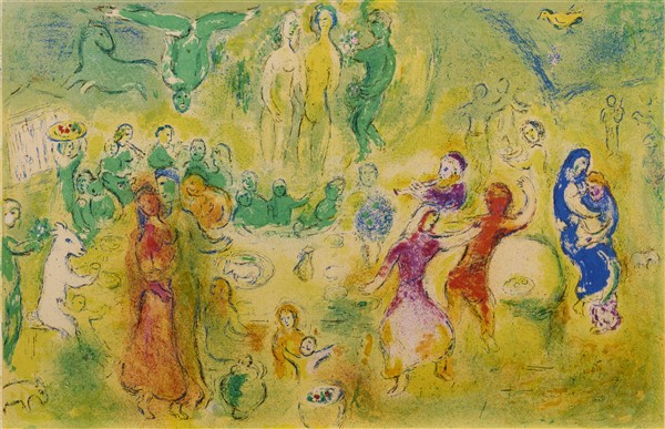 Marc Chagall "Festin nuptial dans la grotte des nymphes" 1961 litografia a color