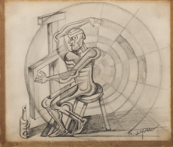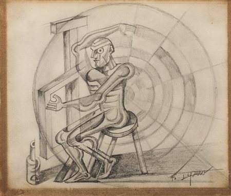 Fortunato Depero "Uomo macchina" 1921 matita su carta cm 23,7x28 Firmato in bass