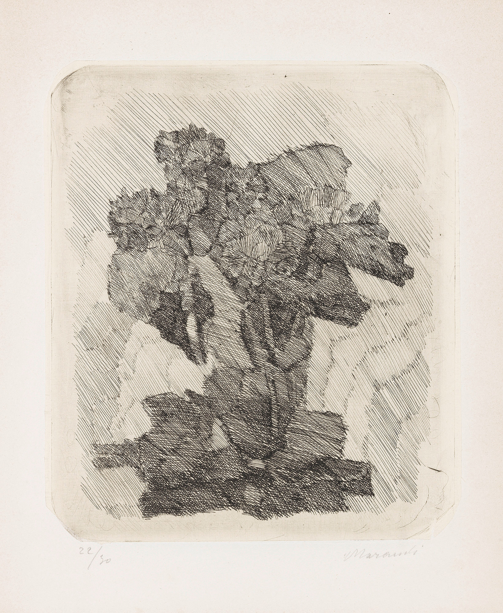 Acquaforte su rame, es. 22/30, cm 19,9x16,7 (lastra), cm 32,4x24,8 (carta)