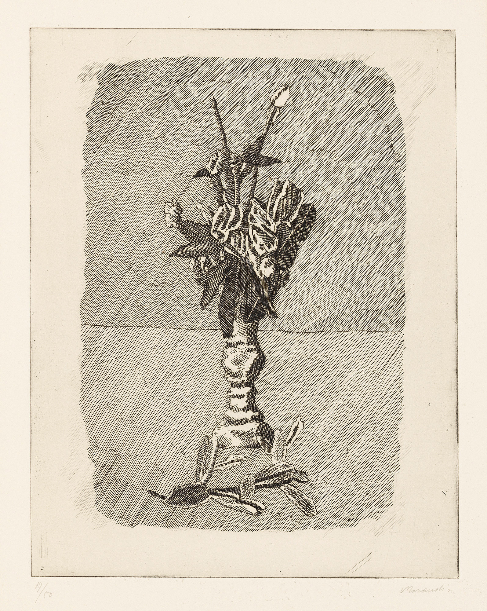 Firma a matita sul margine in basso a destra: Morandi, tiratura in basso a sinistra: 17/50. Al verso: timbro Galleria del Milione, Milano, con n. 7436/7.