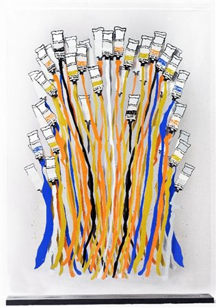 Arman (Nizza 1928 - New York 2005) SENZA TITOLO, 1968 Serigrafia su plexiglas, cm. 51x35x5, es. 31/150 Firma e tiratura in basso a sinistra. Sotto la base: etichetta "Galleria Neher", Essen, Germania. Autentica dell'Archivio "Denyse Durand- Ruel" su foto, carta semplice, con Archivio n° 31/150