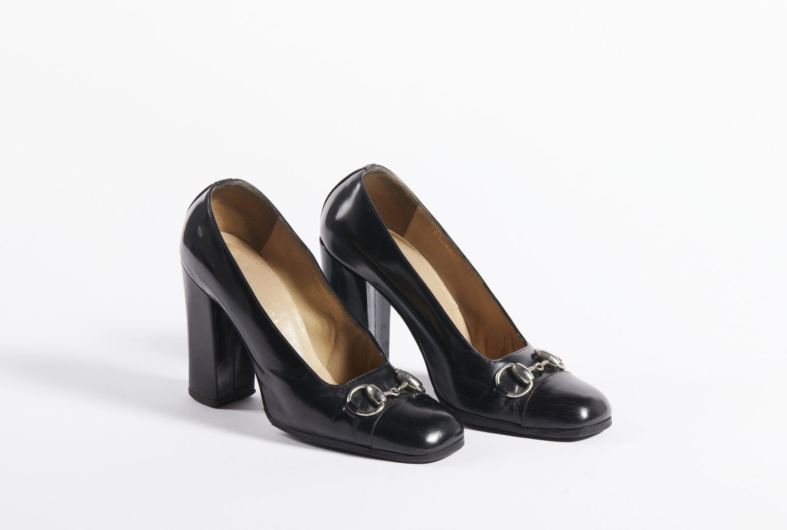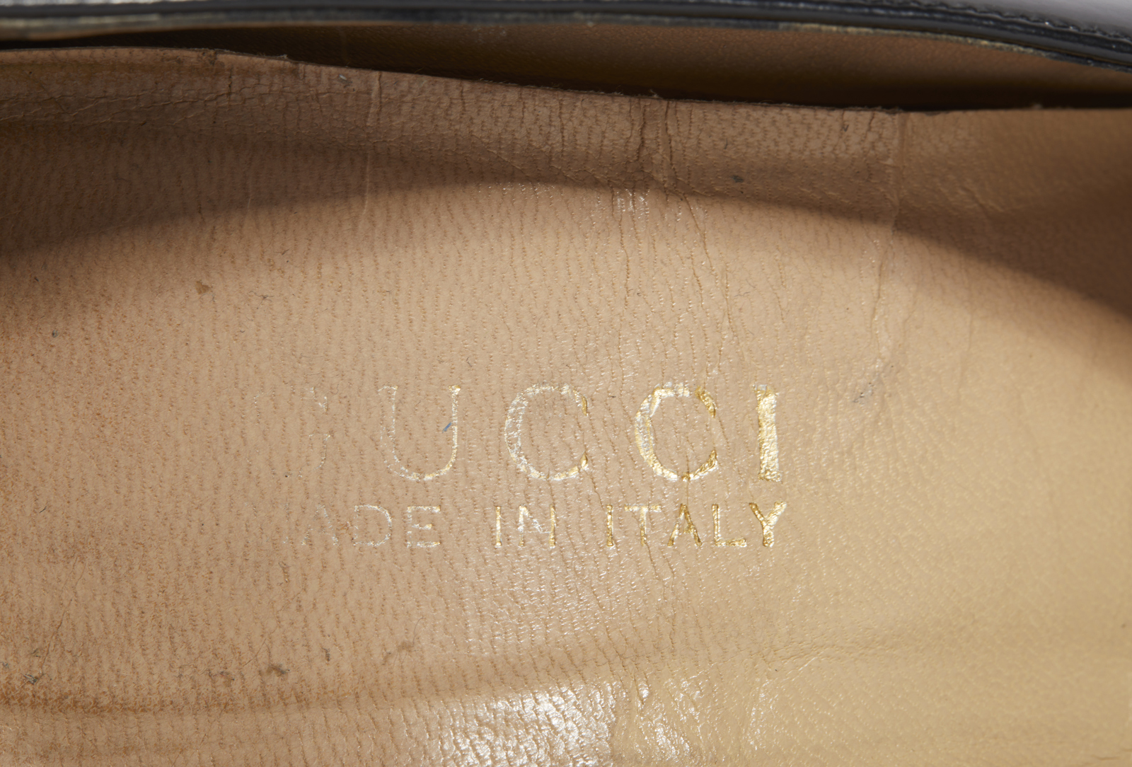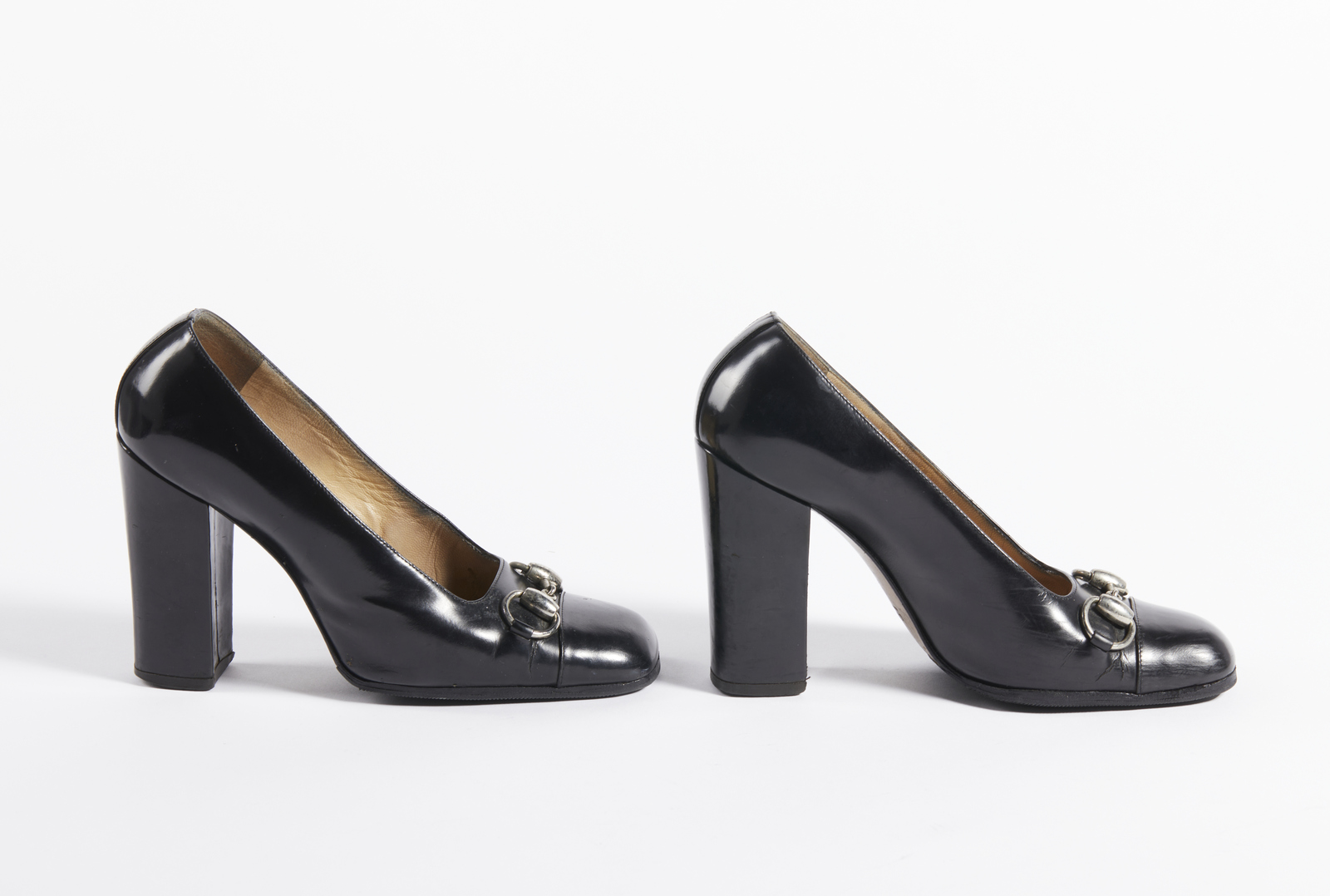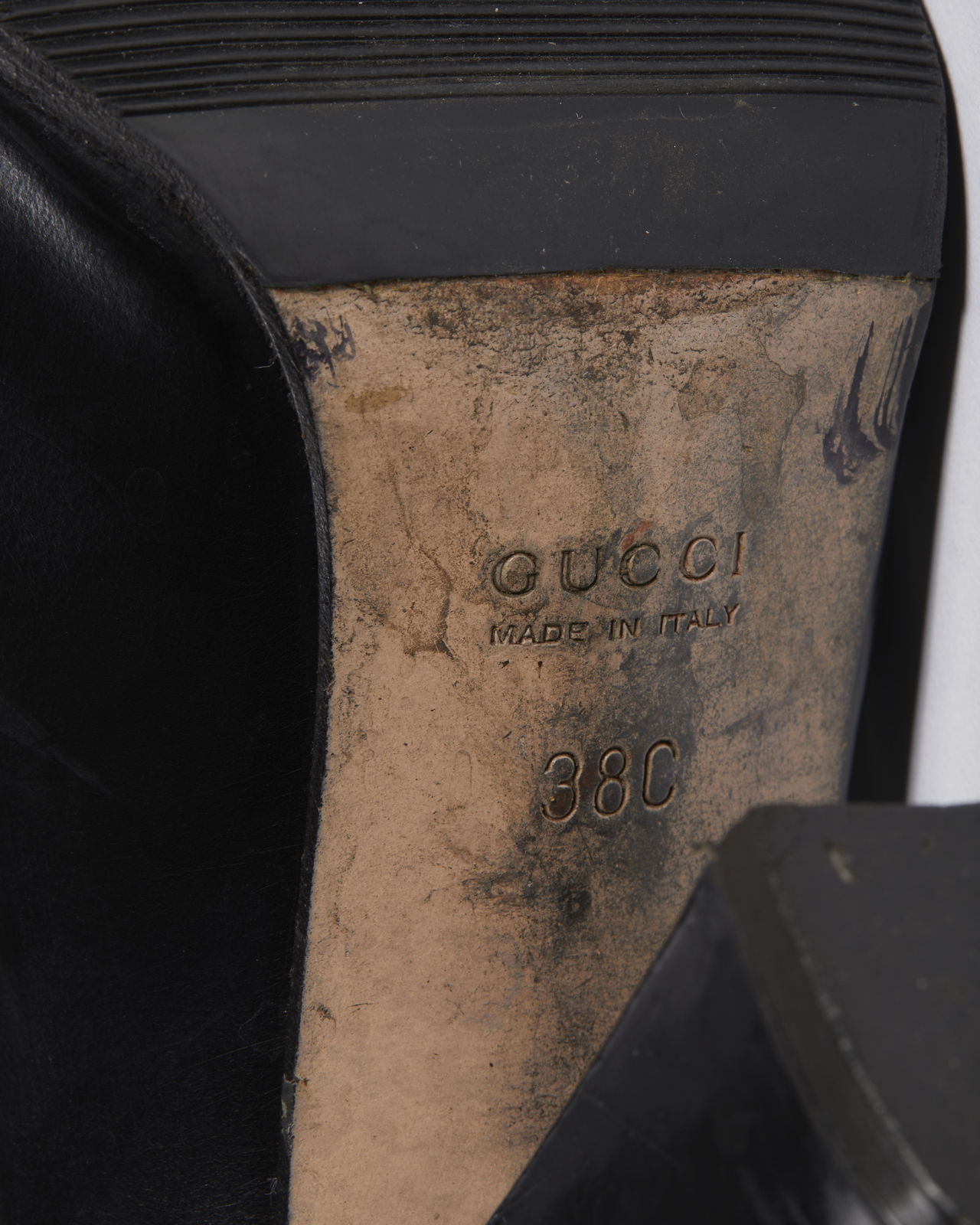 GUCCI - Scarpe con tacco in pelle nera lucida .