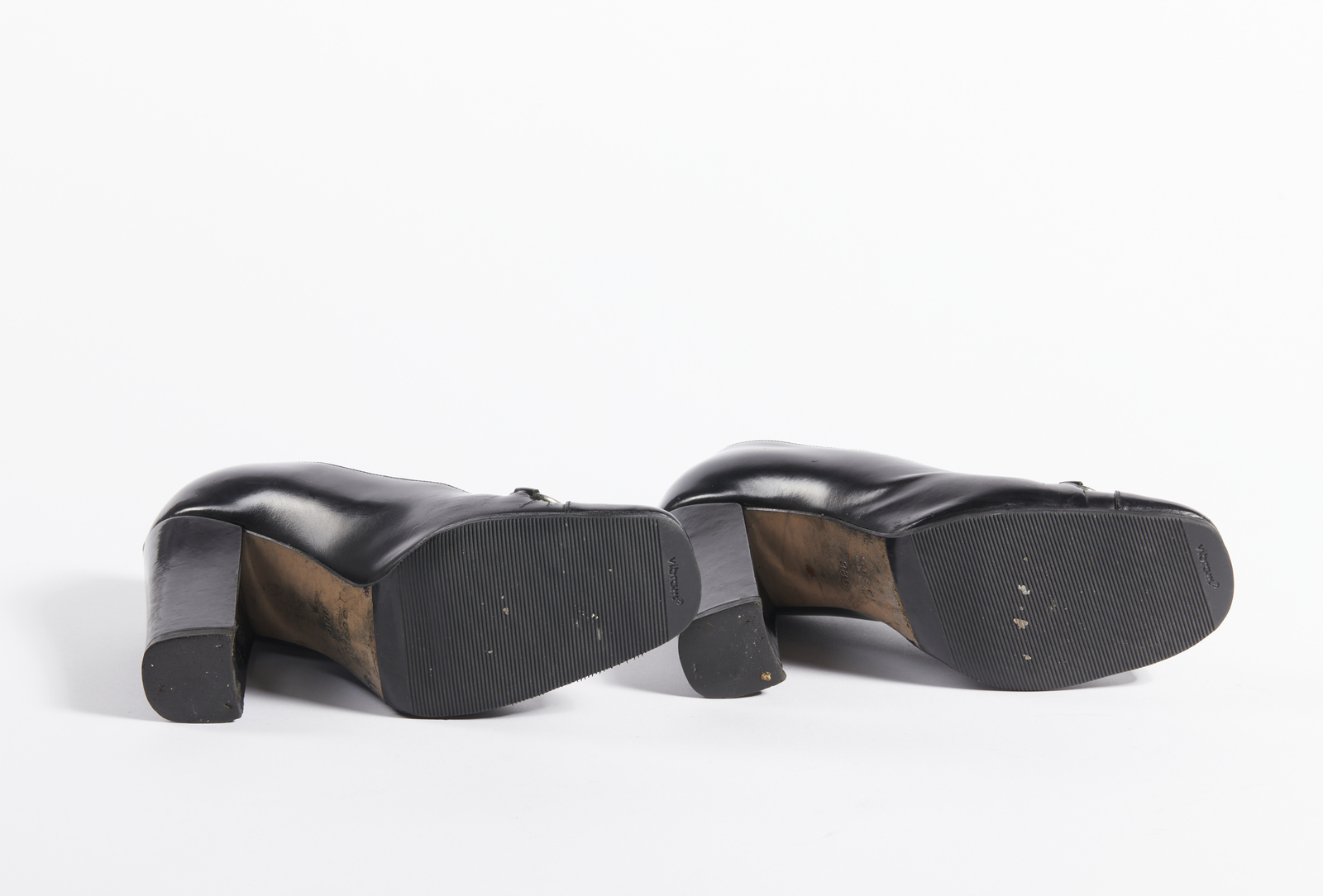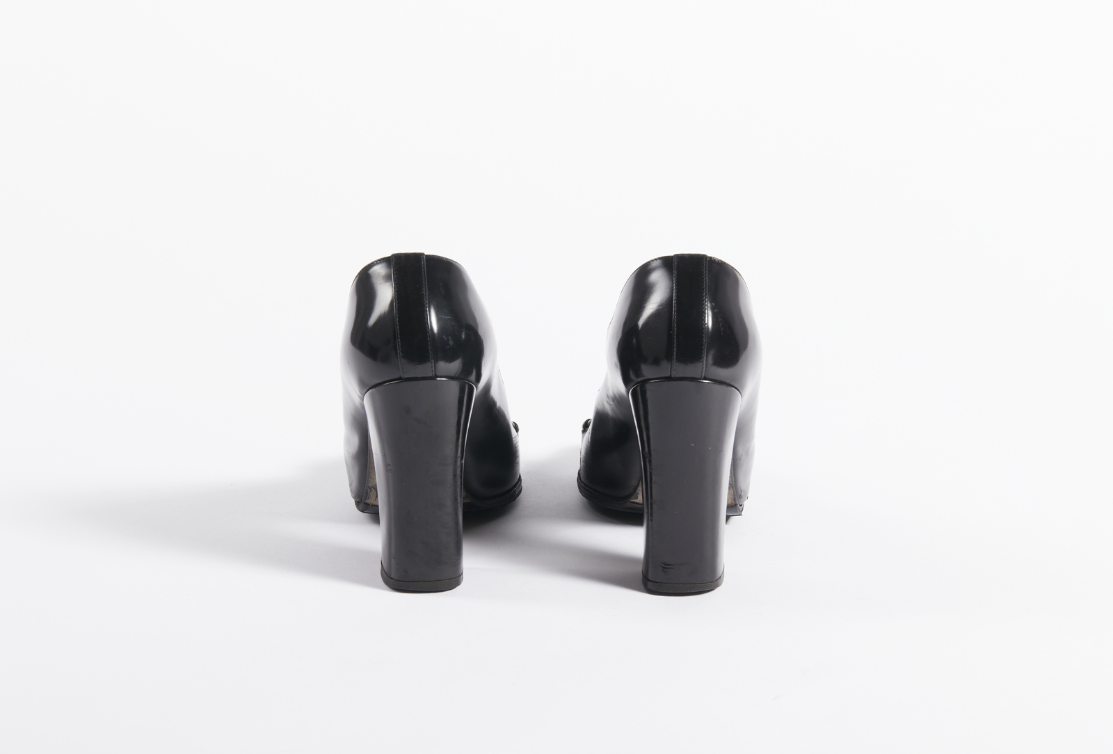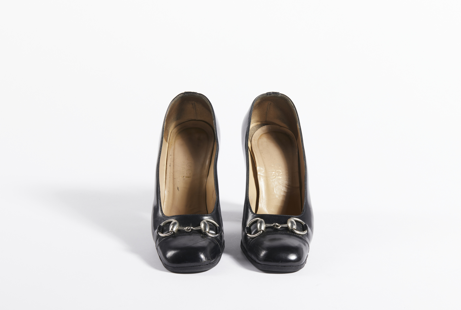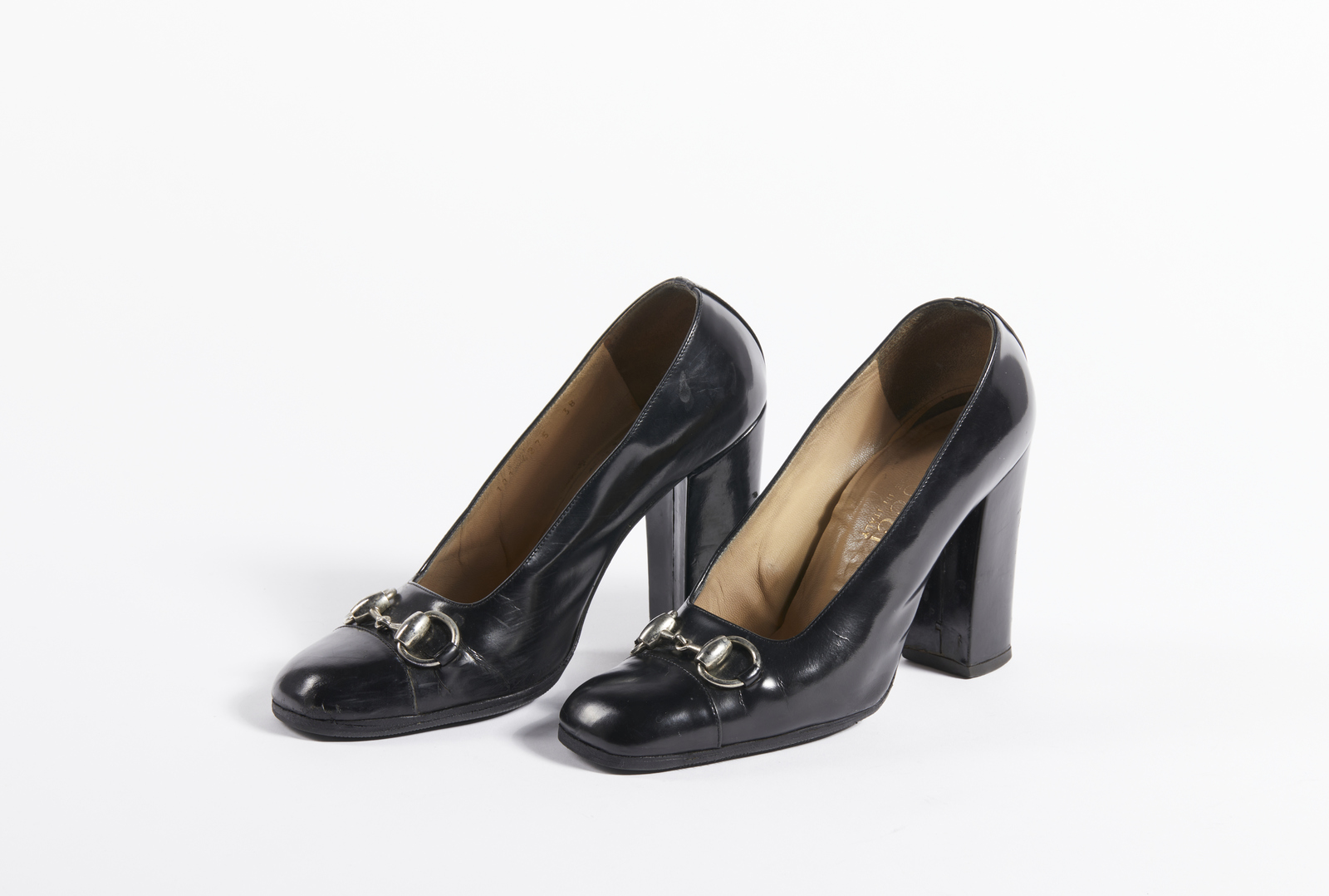 GUCCI - Scarpe con tacco in pelle nera lucida .