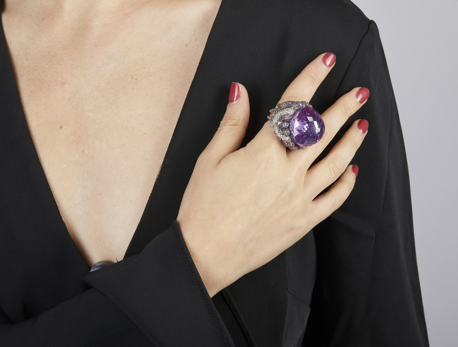 [Nessun Autore] - Anello "medusa" con pietra viola.