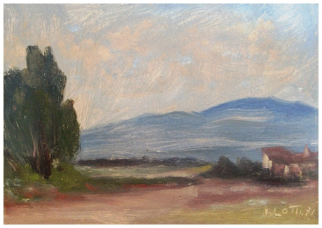 ITALO LOTTI Pisa 1912 – 2009 Senza titolo 1971 Olio su faesite 15,5 x 23. Firma e data in b. a d.; sul verso scritte illeggibili.