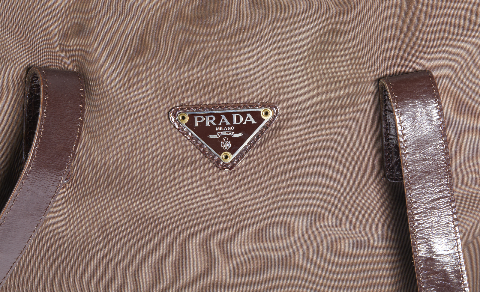 PRADA MILANO - Borsa a spalla marrone in nylon e pelle.