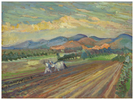 SANTI MACCHIA Pisa 1884 – 1964 L'aratura a Mezzana Olio su cartone 22 x 29. Pubbl.: “Santi Macchia” cat. mostra a cura di Silvio Guarasci, Saletta Viviani, Pisa, 3 – 31 dicembre 2005, p.40.
