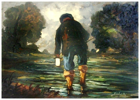 DOMENICO SELOSKI Napoli 1924 – Livorno 1981 Senza titolo Olio su faesite 35 x 50. Firma in b. a d.
