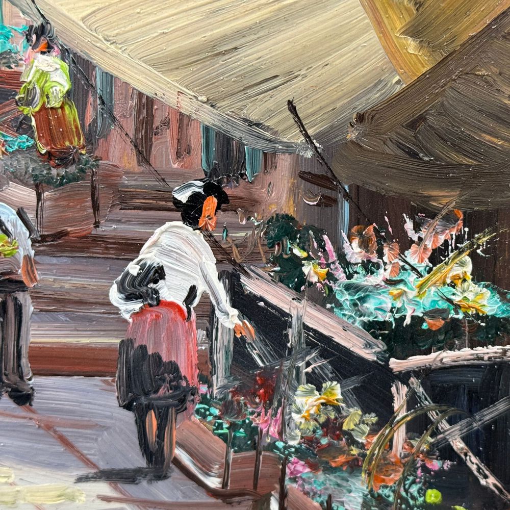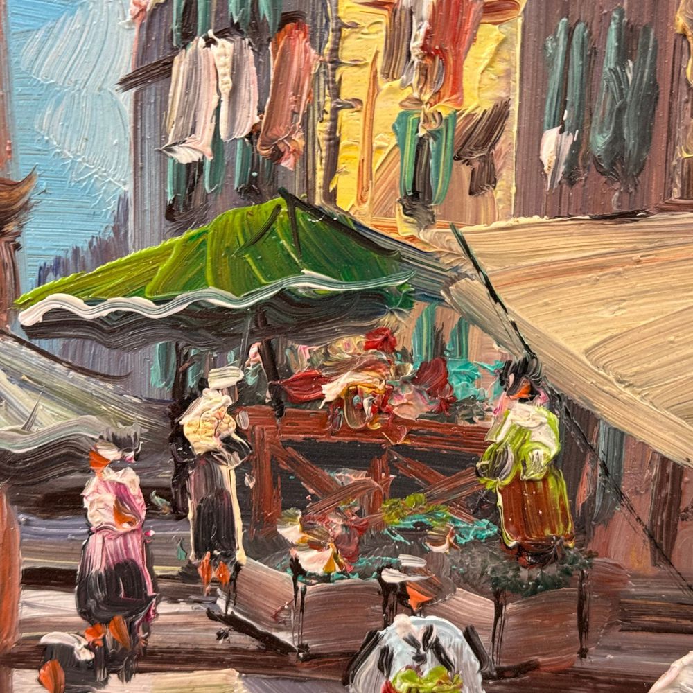 Dipinto olio su pannello, periodo XX secolo scuola Italiana, raffigurante Strada napoletana.