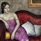 Dipinto olio su tela, periodo XX secolo scuola Italiana, raffigurante Ritratto di donna su divano. Dimensioni interno cornice: 58x72 cm. Dimensioni compreso cornice: 76x90 cm. Da artista anonimo. Opera in buone condizioni con lievi segni di vissuto come da foto allegate.
