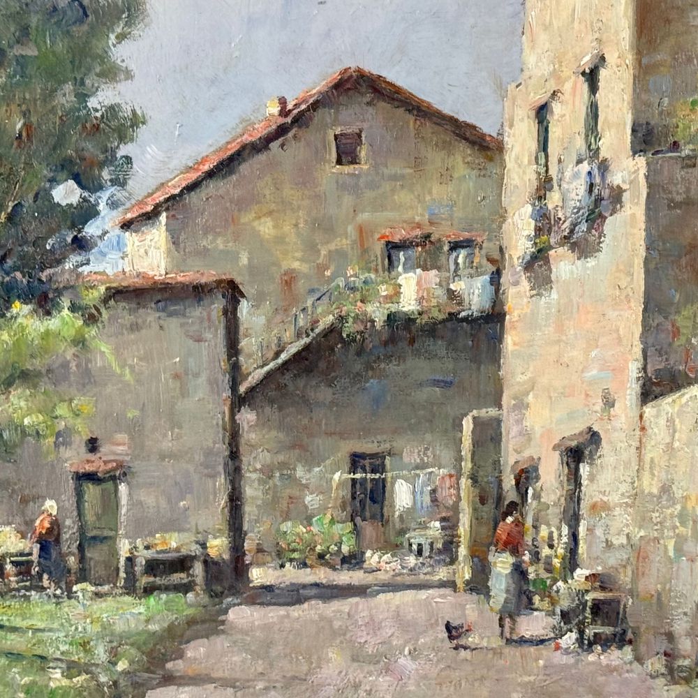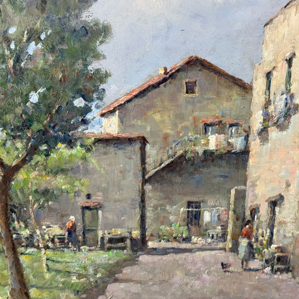 Dipinto olio su tavola, periodo XX secolo scuola Italiana, raffigurante Paesaggio di campagna. Dimensioni interno cornice: 50x40 cm dimensioni compreso cornice: 70x61 cm. Reca firma sul retro da Roberto Cipriano Zuccaro. Opera in buone condizioni.