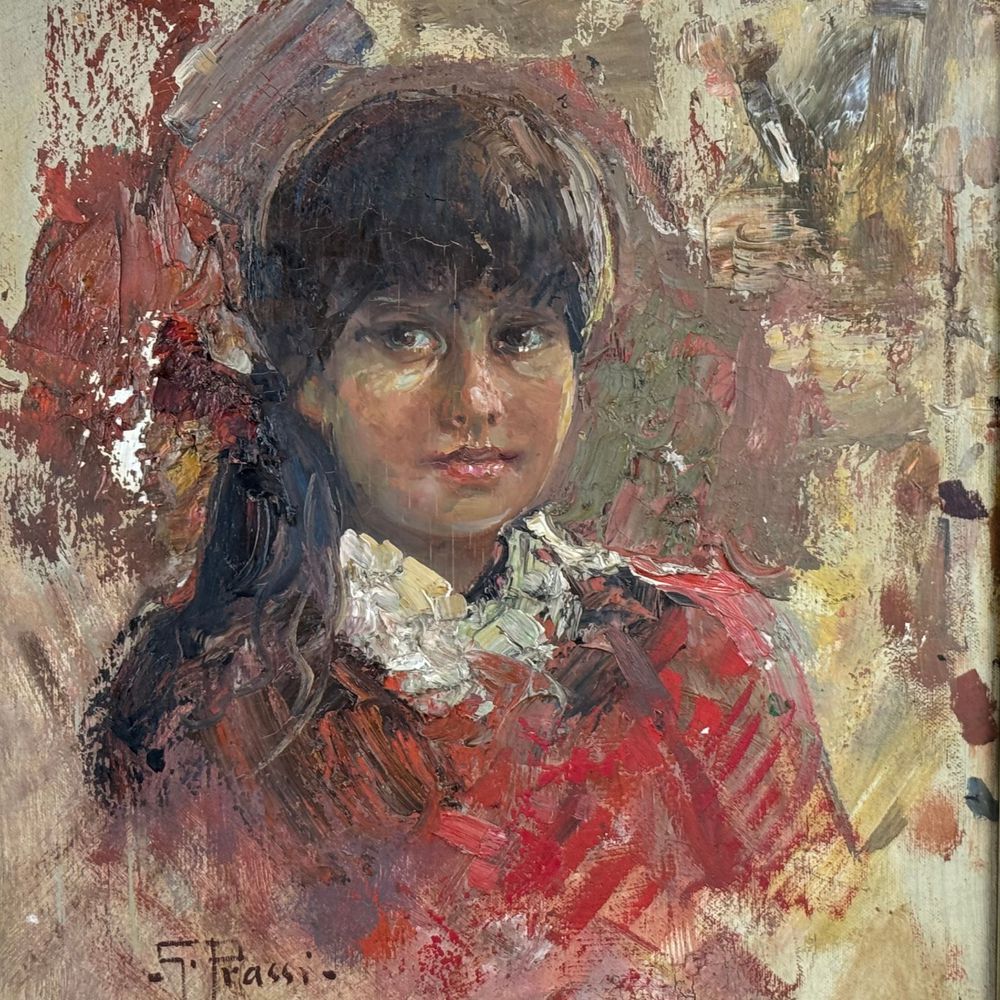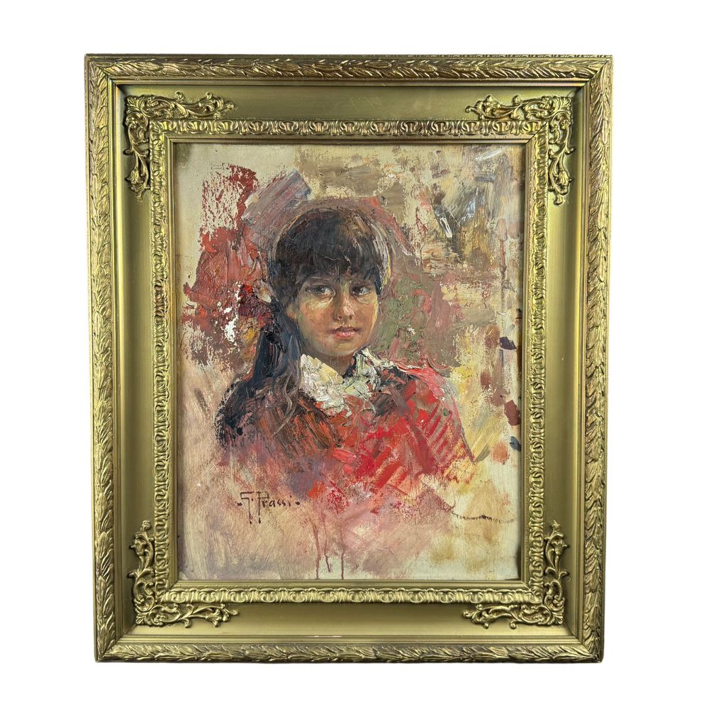 Dipinto olio su tela, periodo XX secolo scuola Italiana, raffigurante Ritratto di giovane donna. Dimensioni interno cornice: 40x50 cm. Dimensioni compreso cornice: 60x70 cm. Reca firma in basso a sinistra da Giovanni Prassi. Opera in buone condizioni e di eccellente qualità artistica.