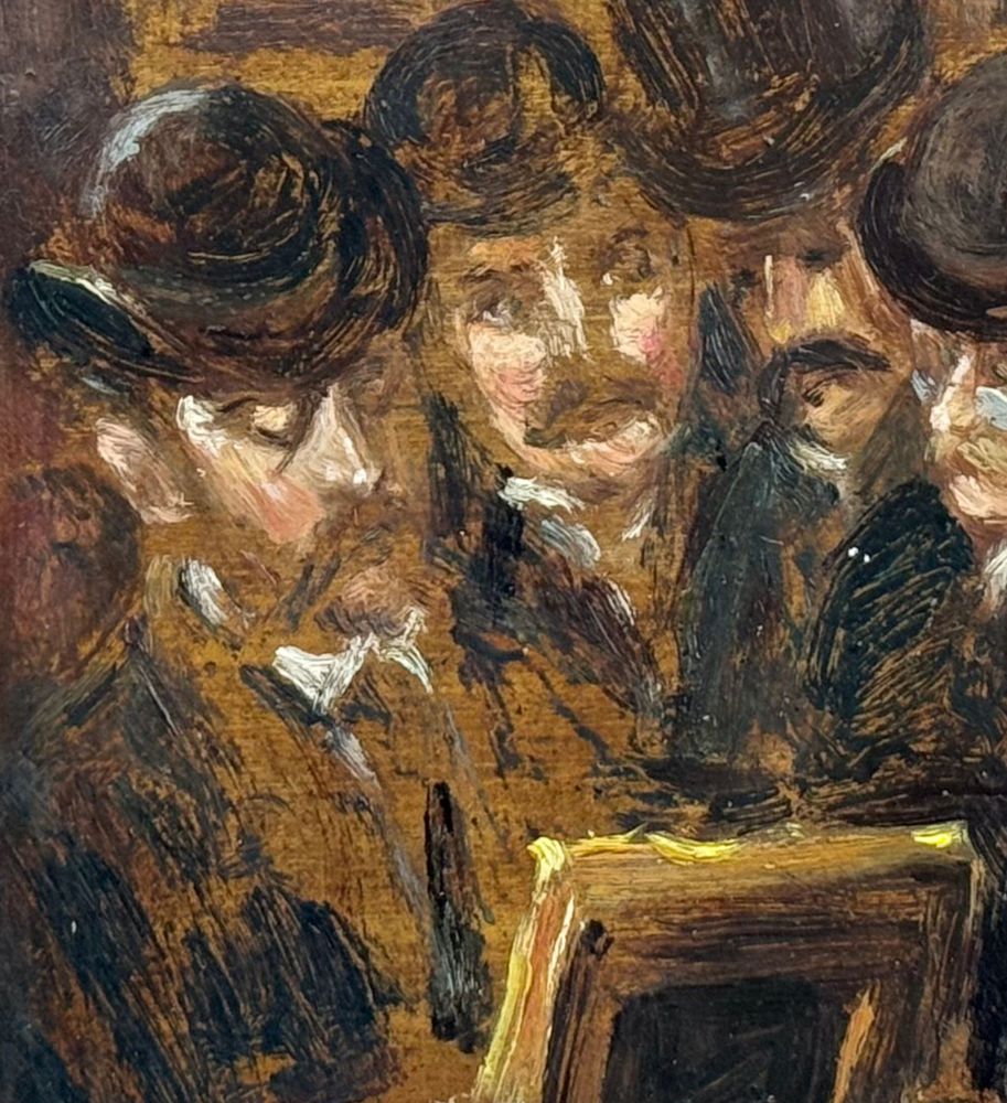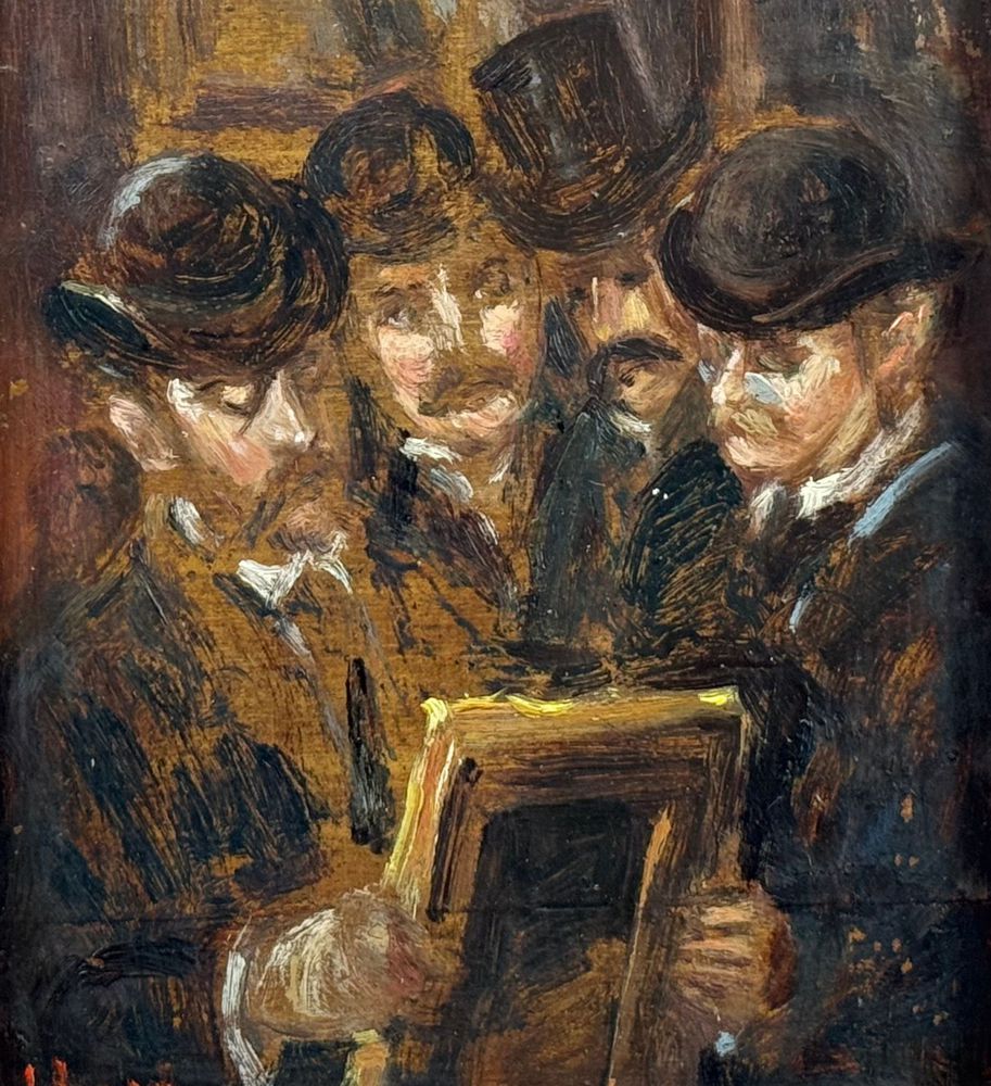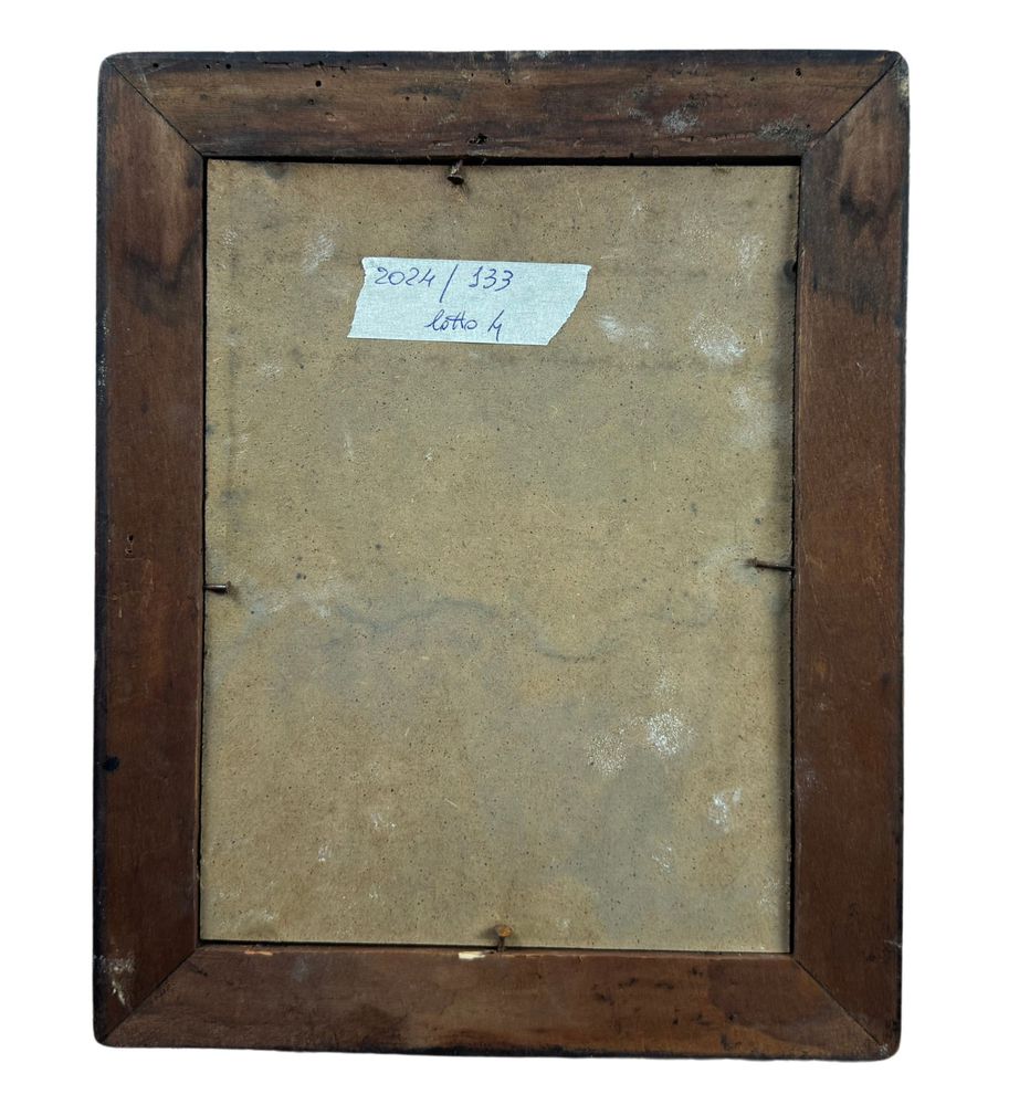 Dipinto olio su cartoncino, periodo primi anni del XX secolo, scuola Italiana, raffigurante Personaggi. Dimensioni compreso cornice: 25x31 cm. Dimensioni interno cornice: 18x24 cm. Reca firma in basso a sinistra da artista non identificato. Opera in buone condizioni con lievi segni di vissuto come da foto allegate.