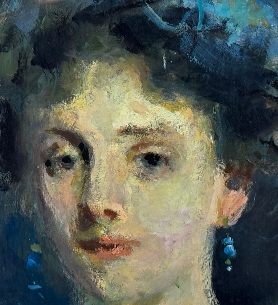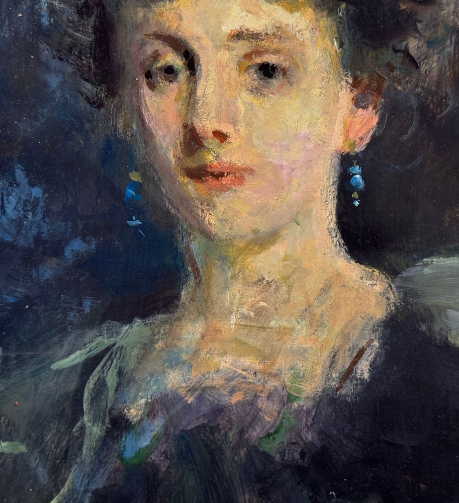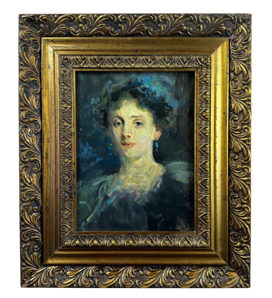 Dipinto olio su tavola, periodo primi anni del XX secolo, scuola Napoletana, raffigurante Ritratto di donna. Dimensioni compreso cornice: 37x43 cm. Dimensioni interno cornice: 20x27 cm. Da artista anonimo. Opera in buone condizioni.