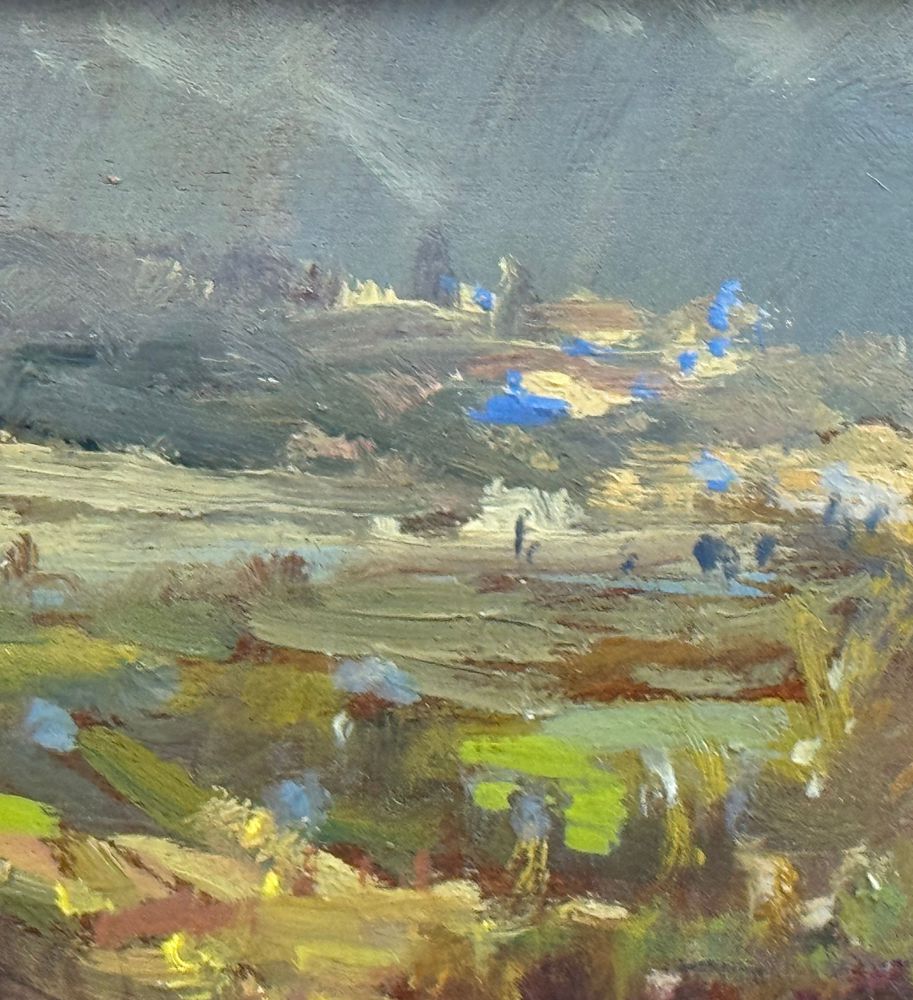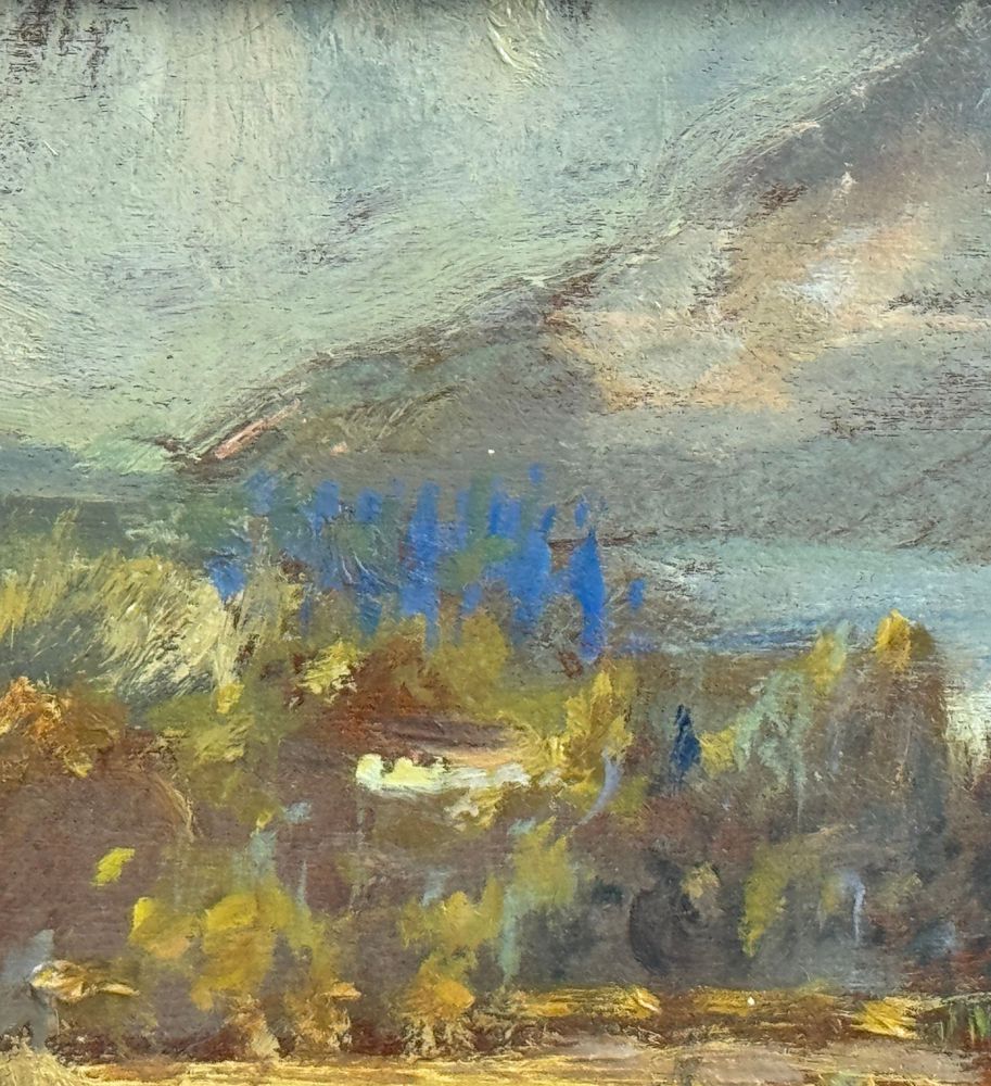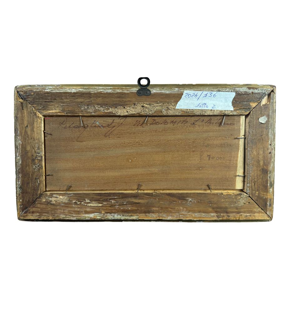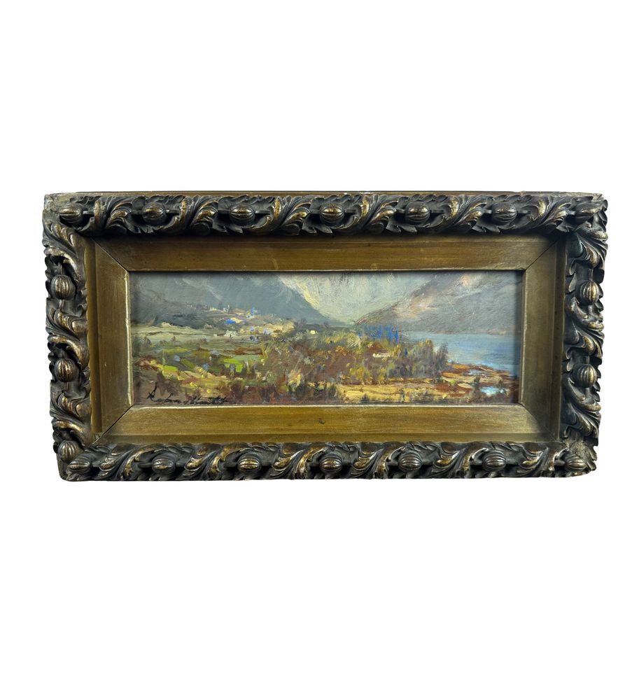 Dipinto olio su tavola, periodo XX secolo scuola Italiana, raffigurante Paesaggio. Dimensioni compreso cornice: 38x20 cm. Dimensioni interno cornice: 29x11 cm. Reca firma in basso a sinistra da artista non identificato. Opera in buone condizioni.
