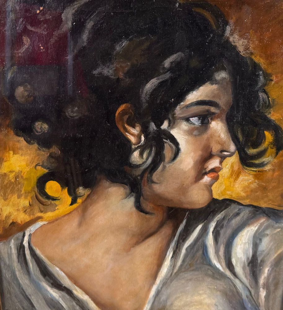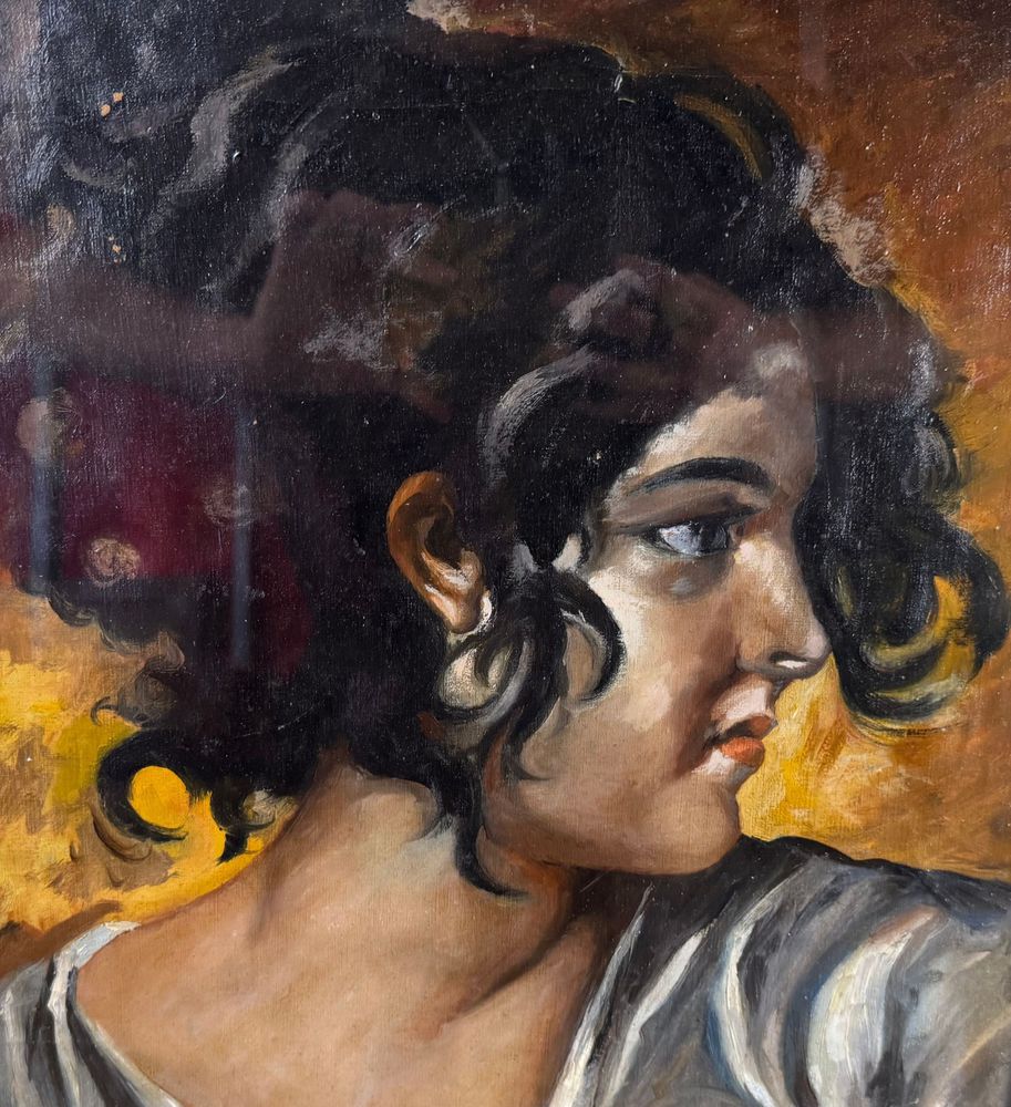 Dipinto olio su tela applicata su cartoncino, periodo prima metà del XX secolo scuola Italiana, raffigurante Ritratto di donna. Dimensioni compreso cornice: 44x53 cm. Dimensioni interno cornice: 49x39 cm. Da artista anonimo. Opera in buone condizioni.