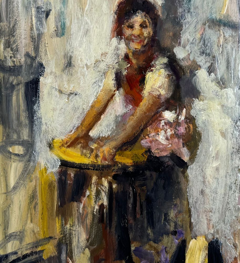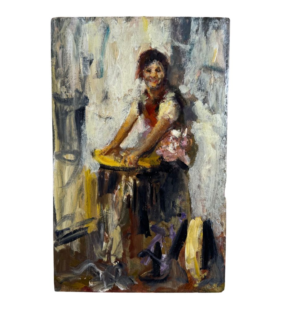 Bozzetto artistico olio su tavola, periodo XX secolo scuola Italiana, raffigurante La lavandaia. Dimensioni: 21x33 cm. Da artista anonimo. Opera in buone condizioni.