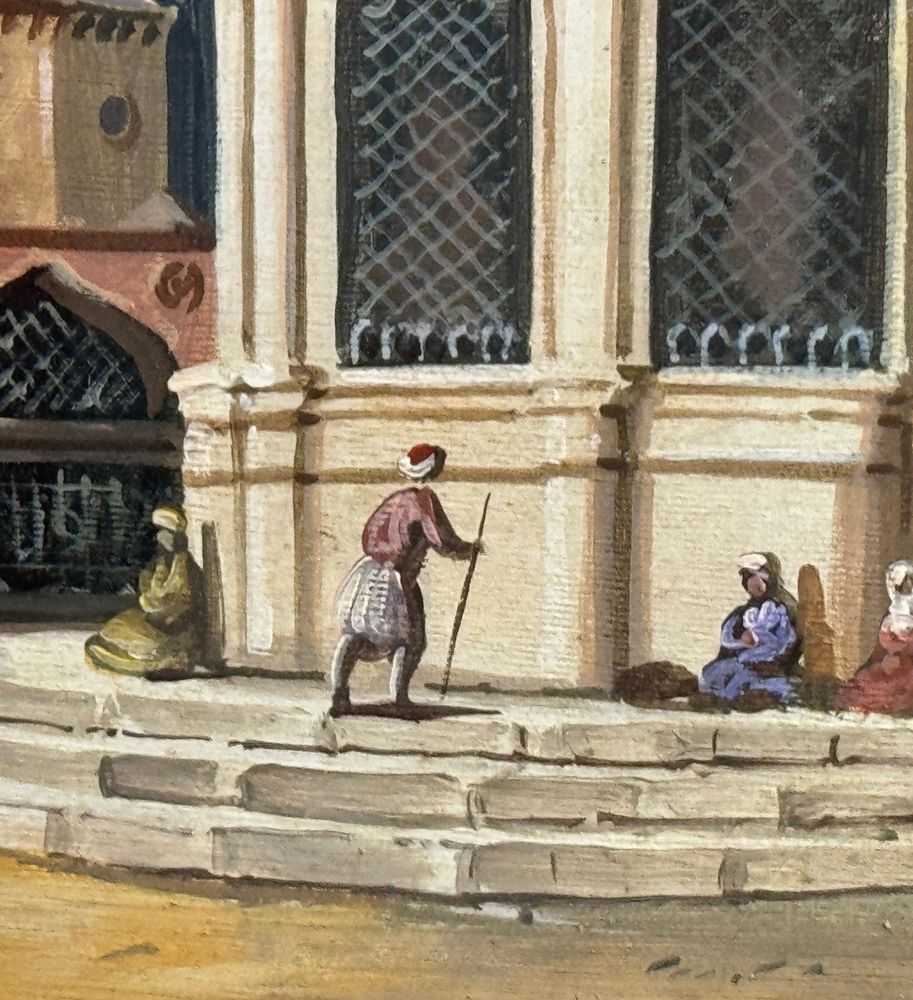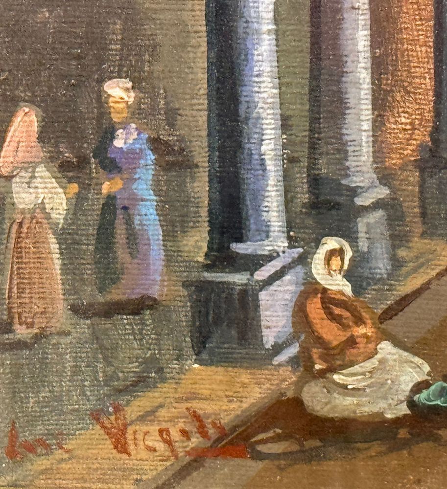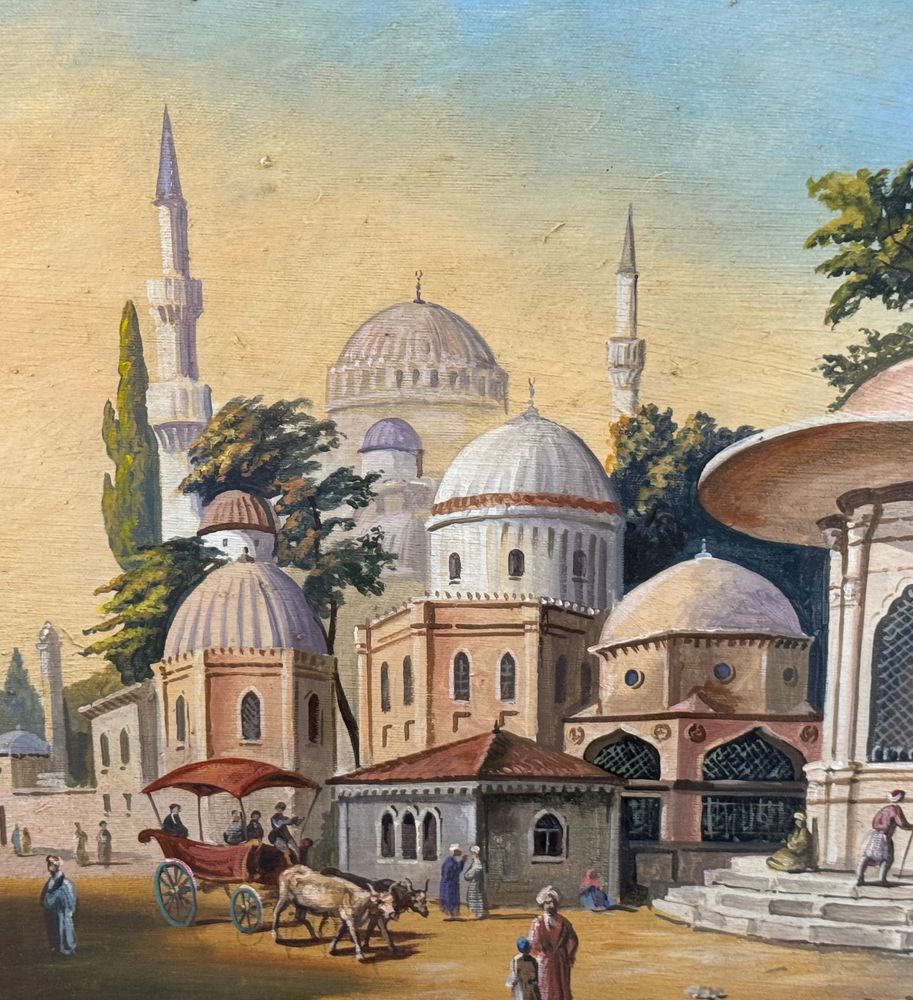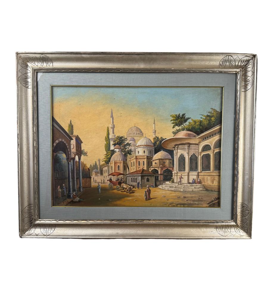 Dipinto olio su tela, periodo prima metà del XX secolo scuola Europea, raffigurante Strada con personaggi a Istanbul. Dimensioni compreso cornice: 93x73 cm. Dimensioni interno cornice: 70X50 cm. Reca firma in basso a sinistra da artista non identificato. Opera in buone condizioni.