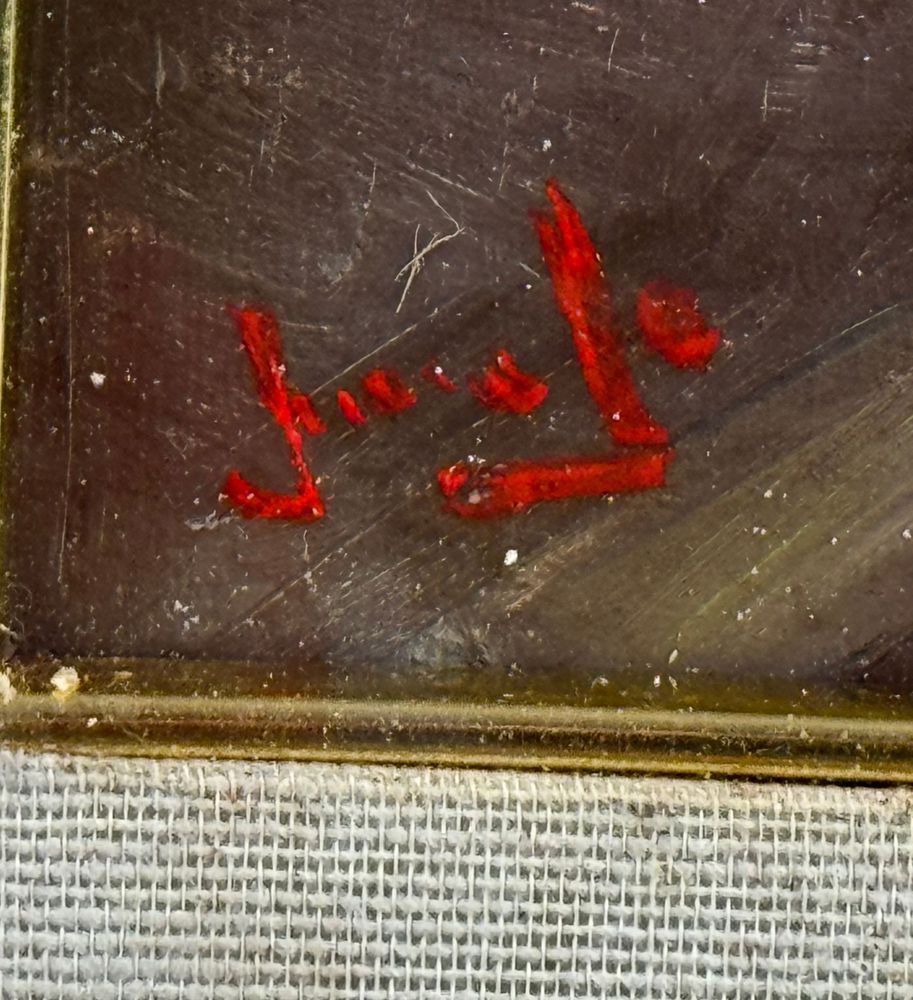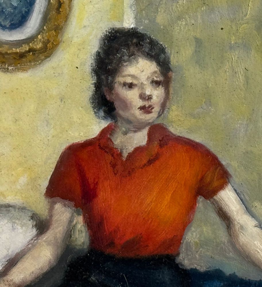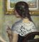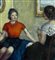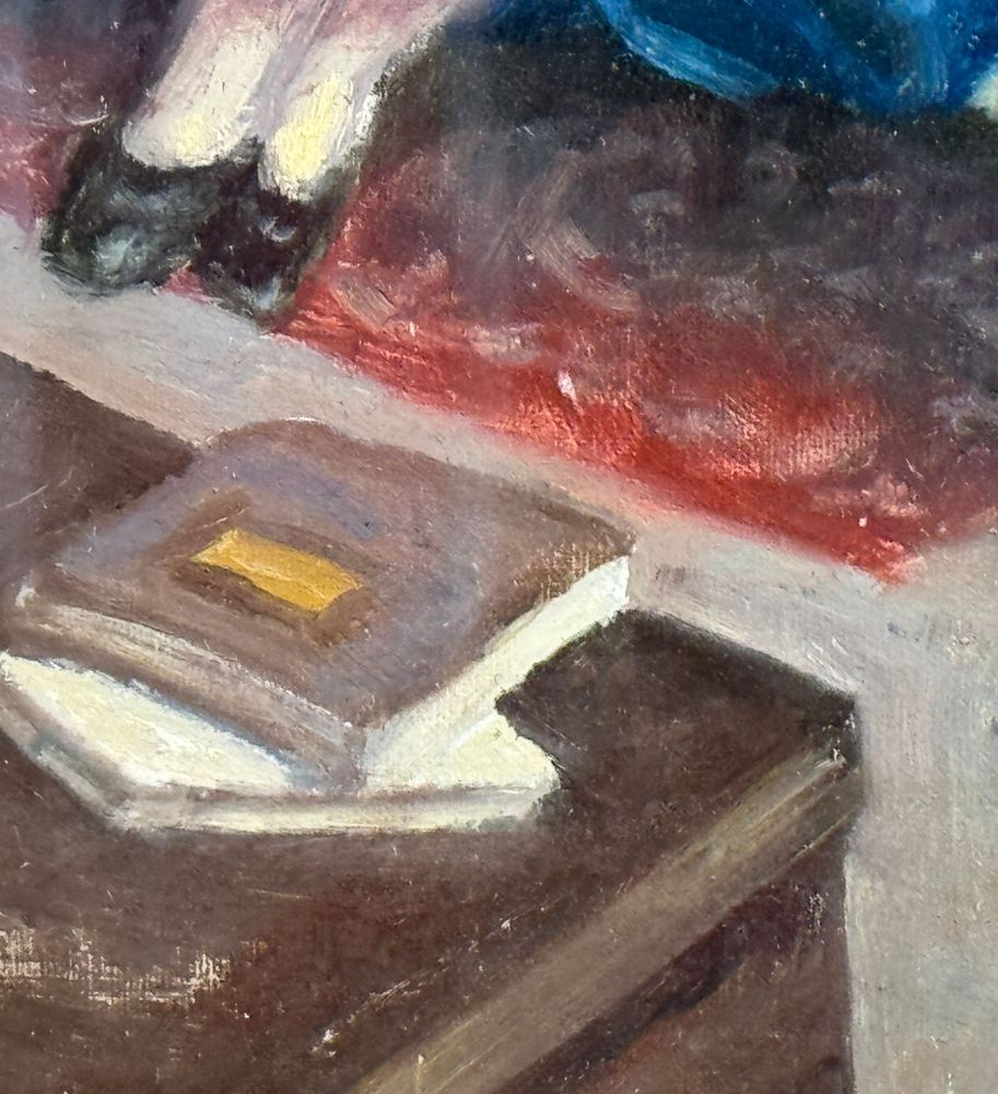 Dipinto olio su tela applicata su pannello, periodo prima metà del XX secolo scuola Europea, raffigurante Due donne in un interno. Dimensioni compreso cornice: 45x56 cm. Dimensioni interno cornice: 30x40 cm. Reca firma in basso a sinistra da artista non identificato. Opera in buone condizioni.