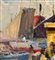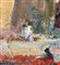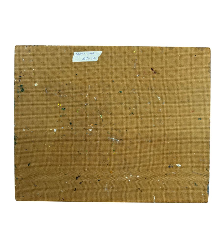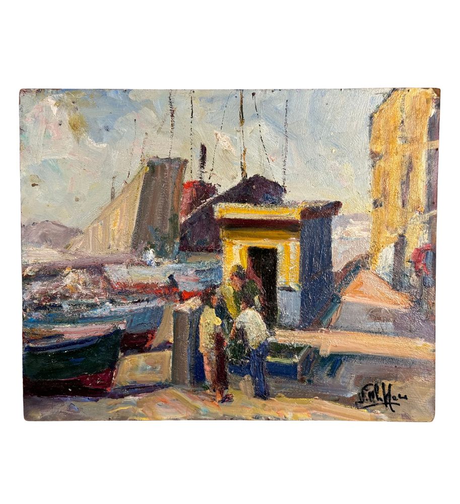 Dipinto olio su pannello, periodo XX secolo scuola italiana, raffigurante Marina a Pozzuoli con personaggi. Dimensioni: 50x40 cm. Reca firma in basso a destra da artista non identificato. Opera in buone condizioni.