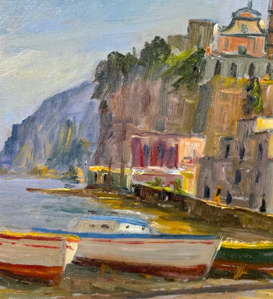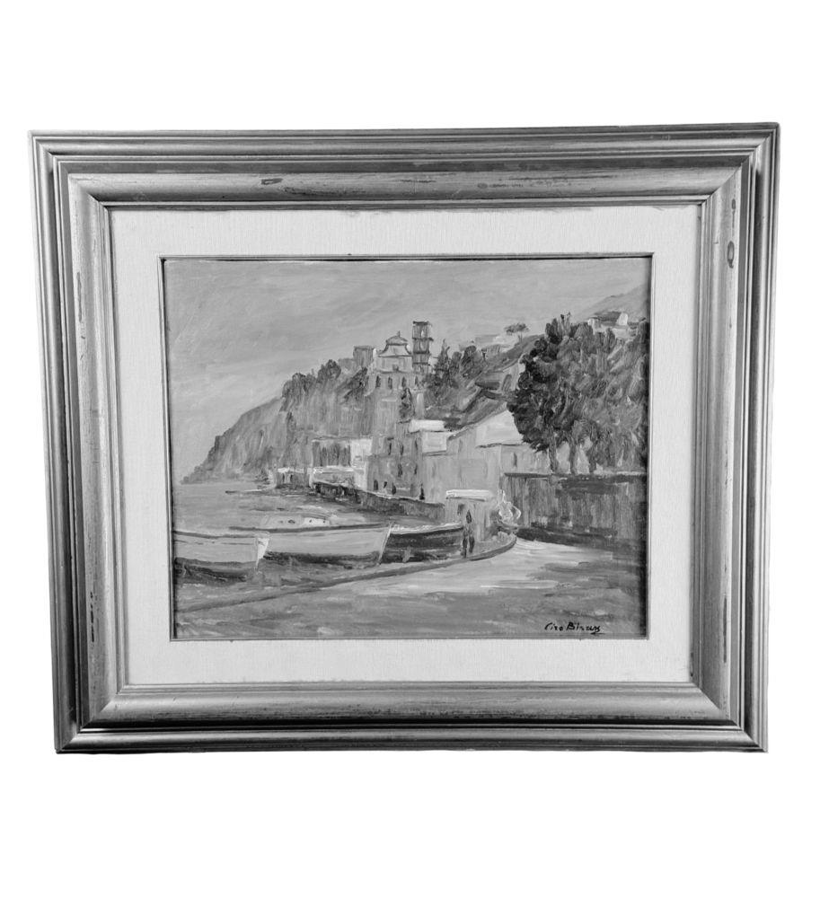 Dipinto olio su tela, periodo XX secolo scuola italiana, raffigurante Scorcio di marina. Dimensioni compreso cornice: 74x64 cm. Dimensioni interno cornice: 50x40 cm. Reca firma in basso a destra da Ciro Birrese. Opera in buone condizioni.
