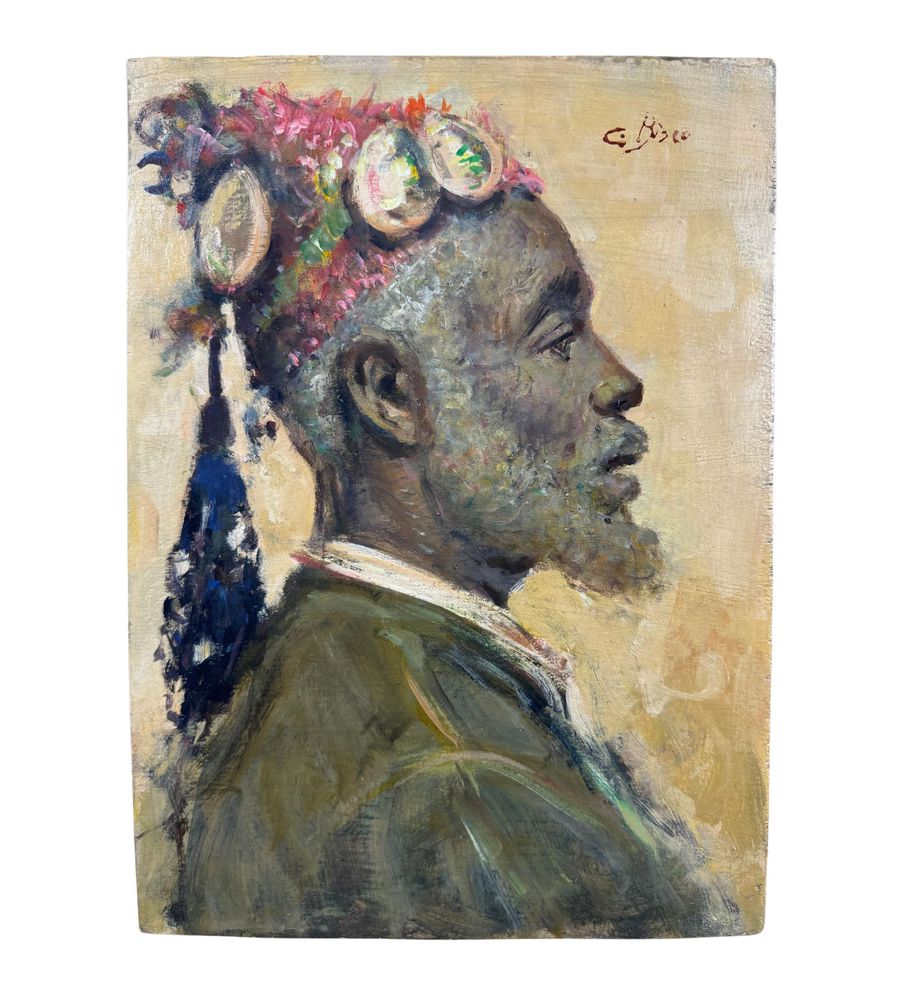Dipinto olio su tavola, periodo XX secolo scuola italiana, raffigurante Ritratto di uomo orientale. Dimensioni: 37x27 cm. Reca firma in alto a destra da artista non identificato. Opera in buone condizioni.