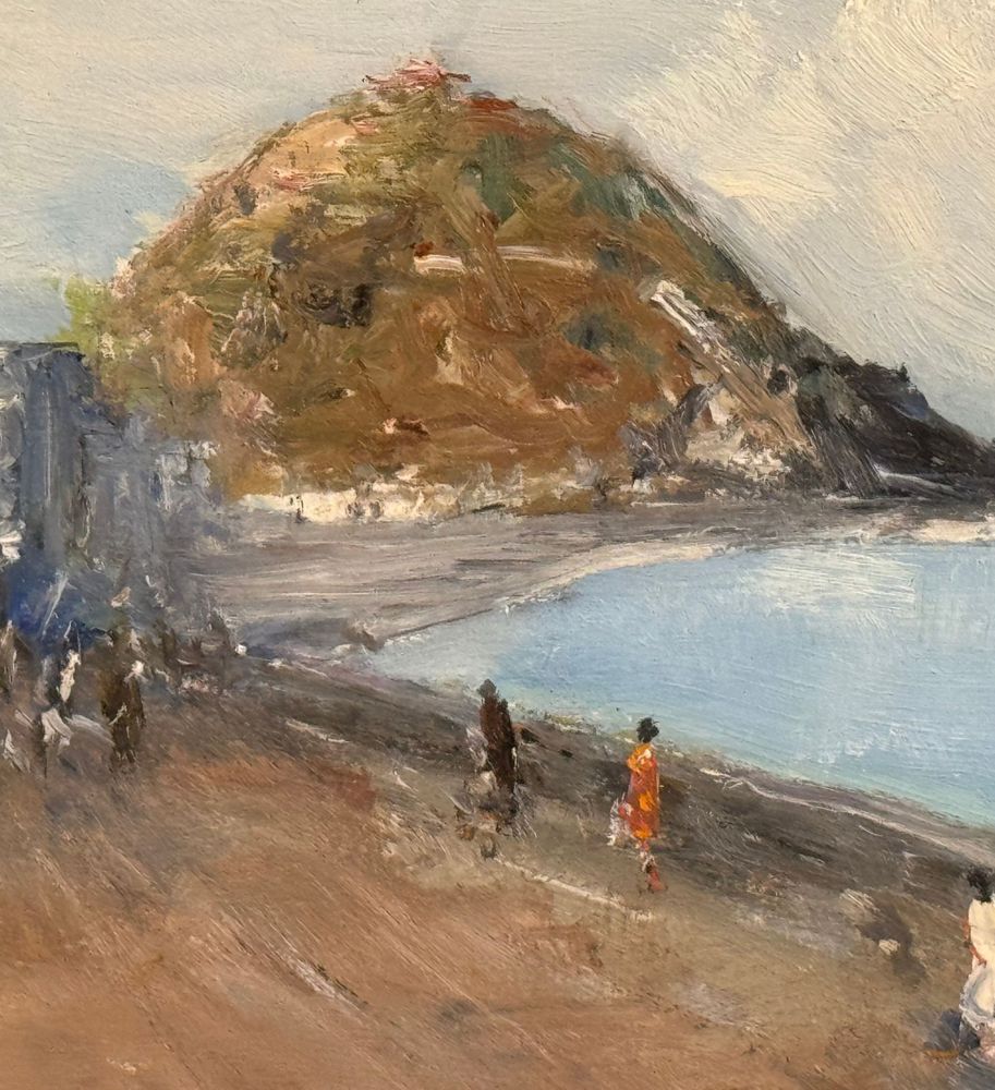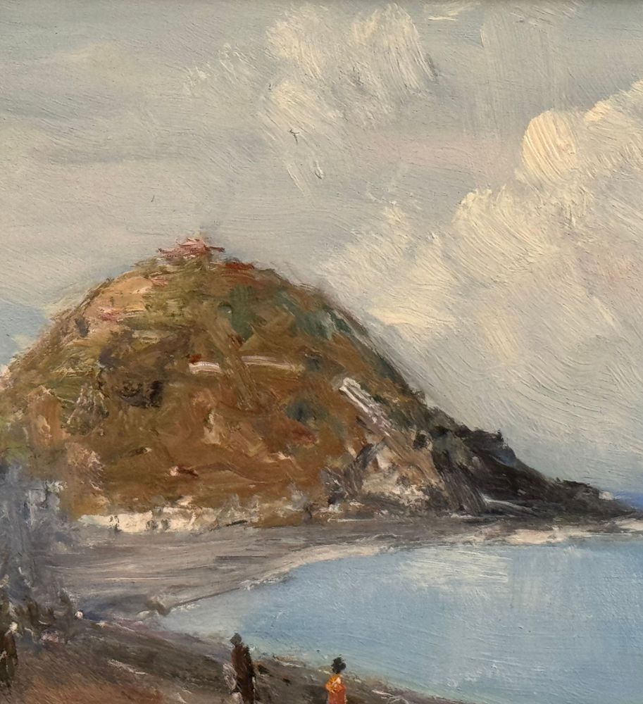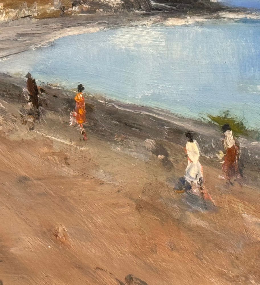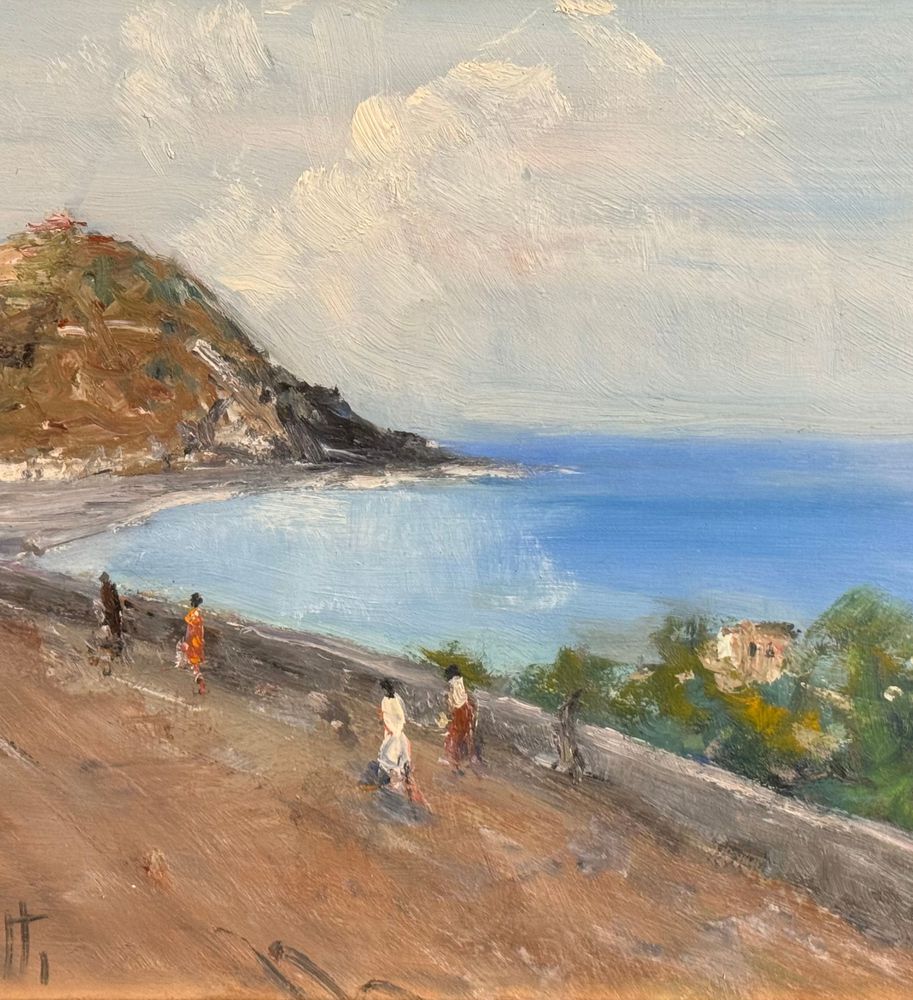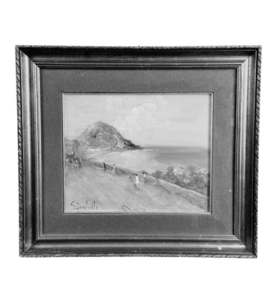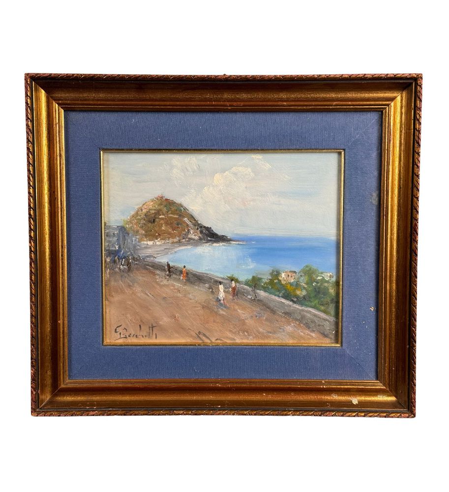 Dipinto olio su tavola, periodo XX secolo scuola Italiana, raffigurante Marina con personaggi. Dimensioni compreso cornice: 46x40 cm. Dimensioni interno cornice: 30x25 cm. Reca firma in basso a sinistra e autentica sul retro da Gaetano Bocchetti (1888 - 1990). Opera in buone condizioni.