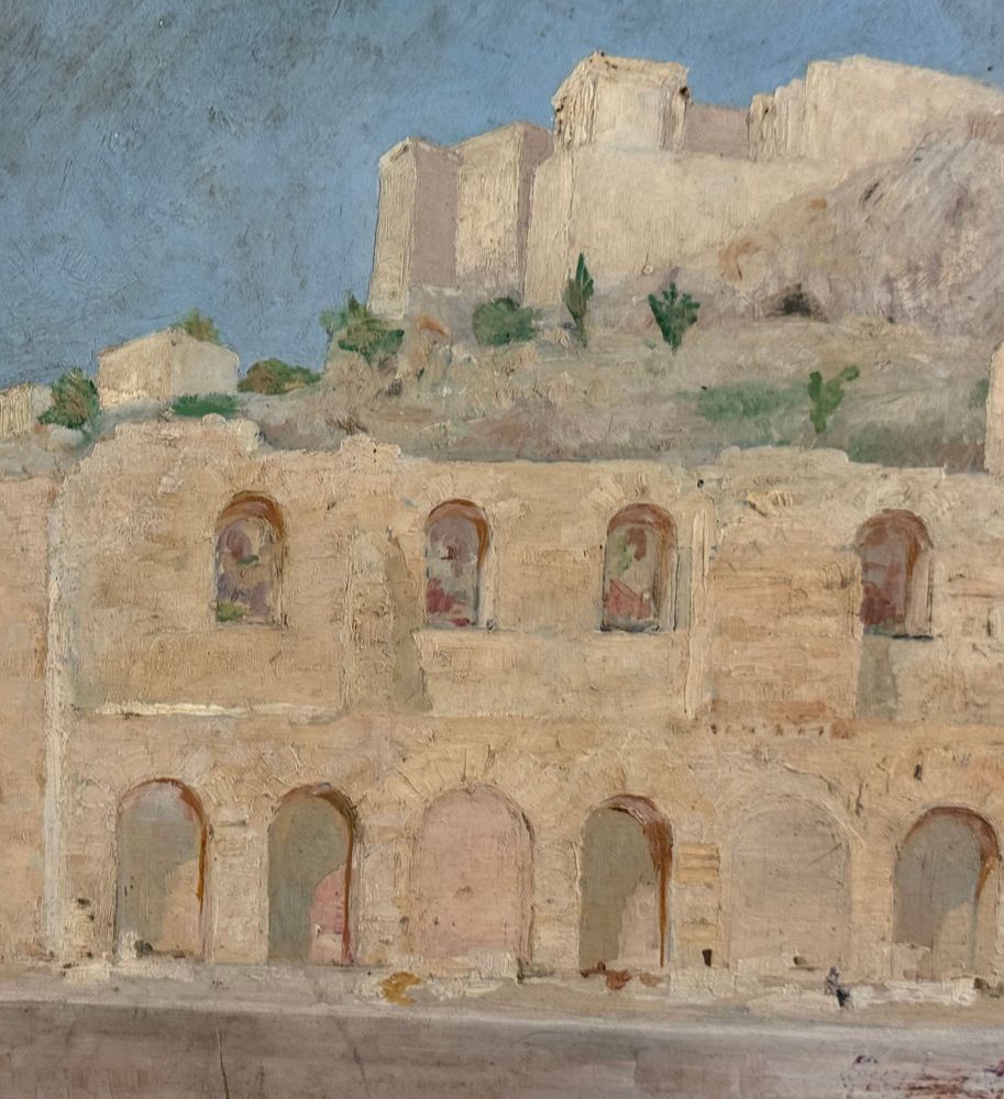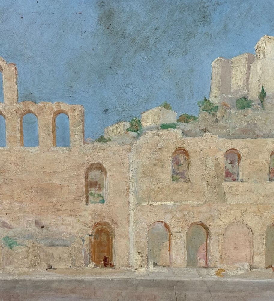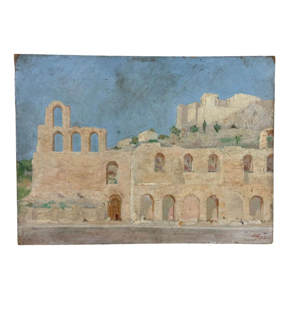 Dipinto olio su cartoncino, periodo XX secolo scuola Italiana, raffigurante Mura antiche. Dimensioni: 46x34 cm. Da artista anonimo. Opera in buone condizioni con lievi segni di vissuto come da foto allegate.