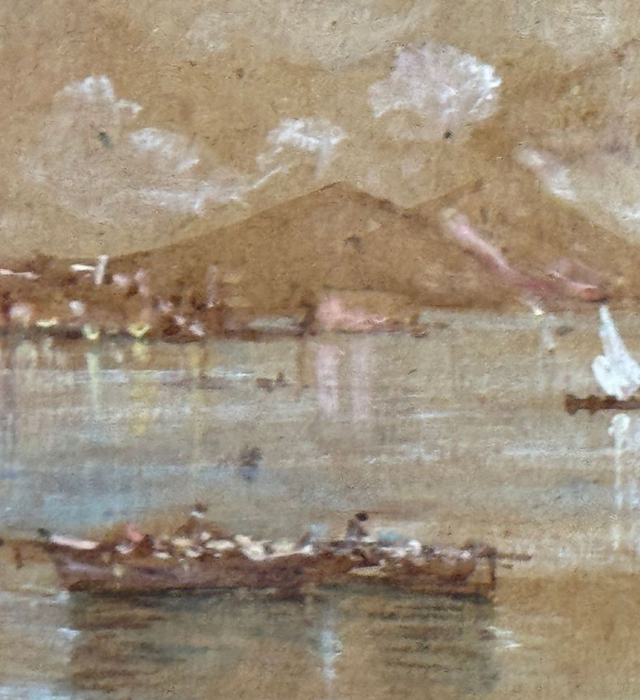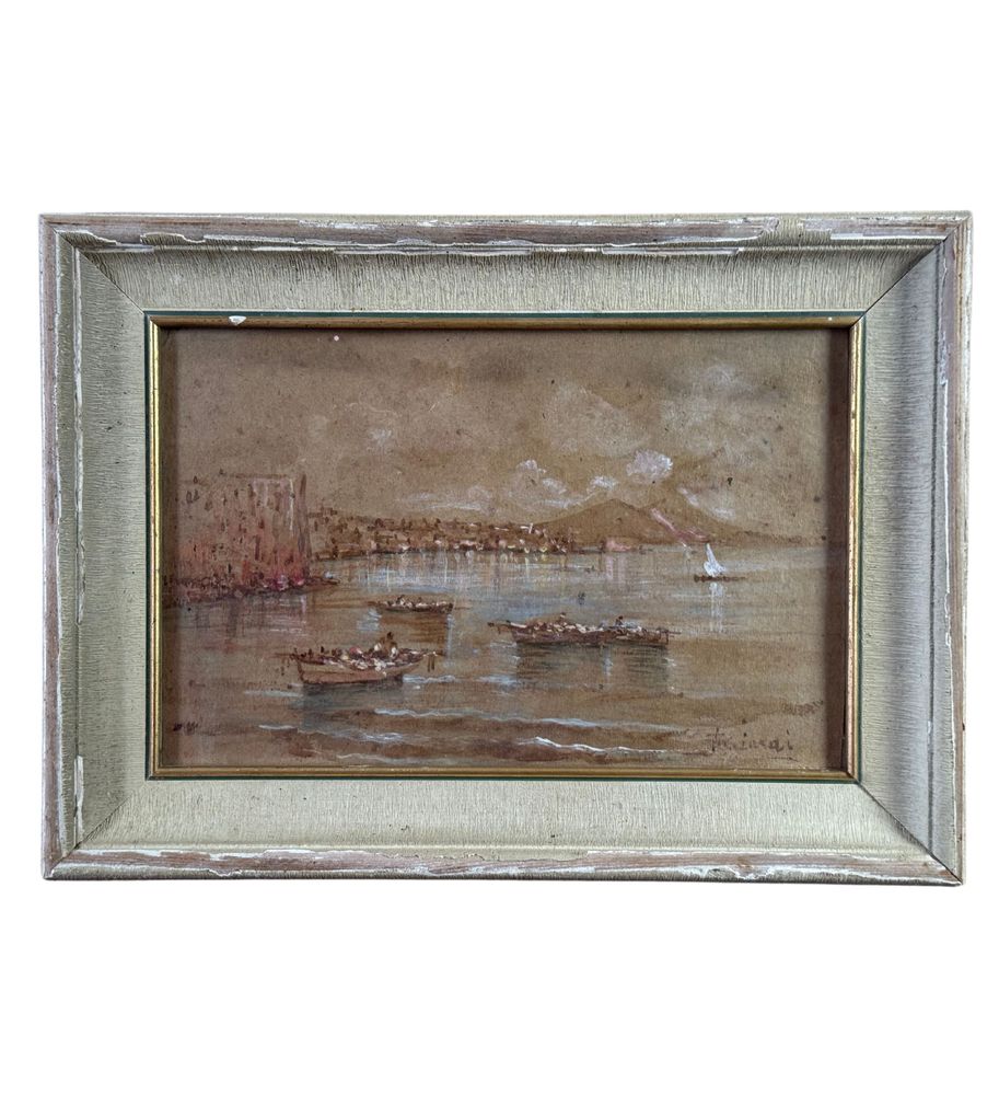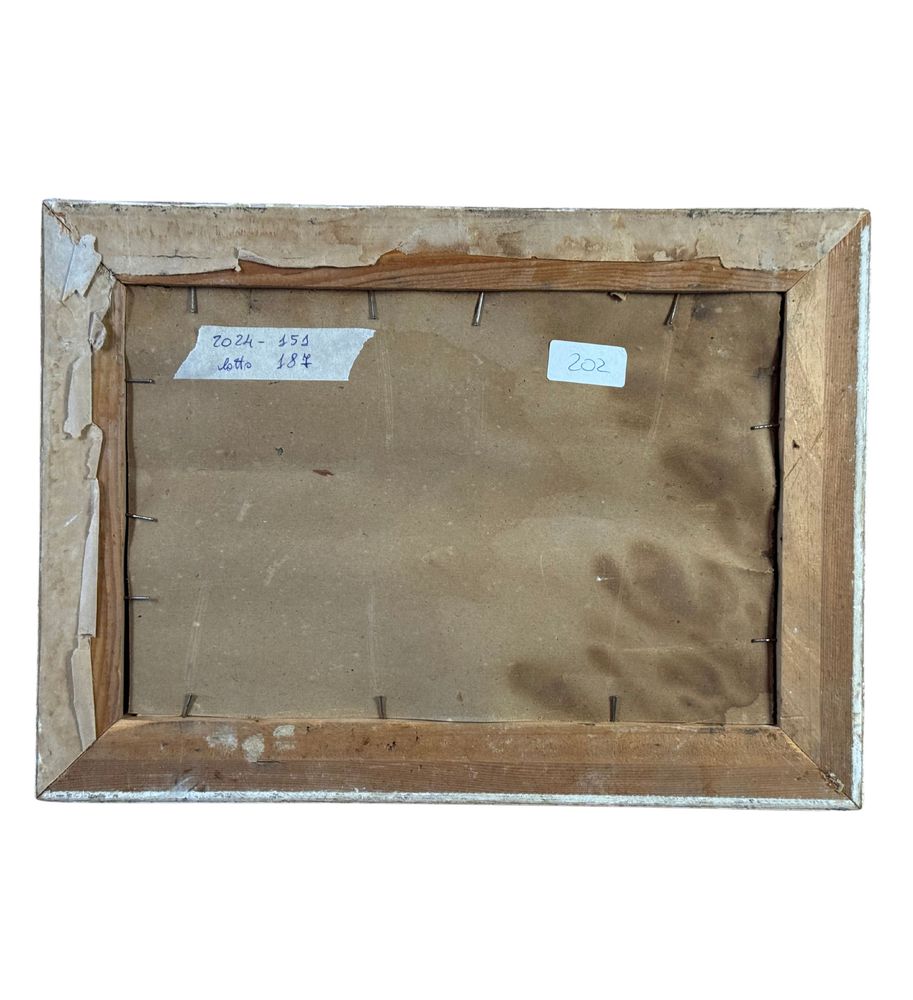 Dipinto olio su cartoncino, periodo XX secolo scuola Italiana, raffigurante Scorcio napoletano. Dimensioni compreso cornice: 39x28 cm. Dimensioni interno cornice: 30x20 cm. Reca firma in basso a destra da artista non identificato. Opera in buone condizioni.