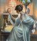 Dipinto olio su tela applicata su pannello, periodo XX secolo scuola italiana, raffigurante Giovane donna mentre gioca con il gatto. Copia da Delphin Enjolras (1857 - 1945) Dimensioni compreso cornice: 60x83 cm. Dimensioni interno cornice: 42x74 cm. Da artista anonimo. Opera in buone condizioni.